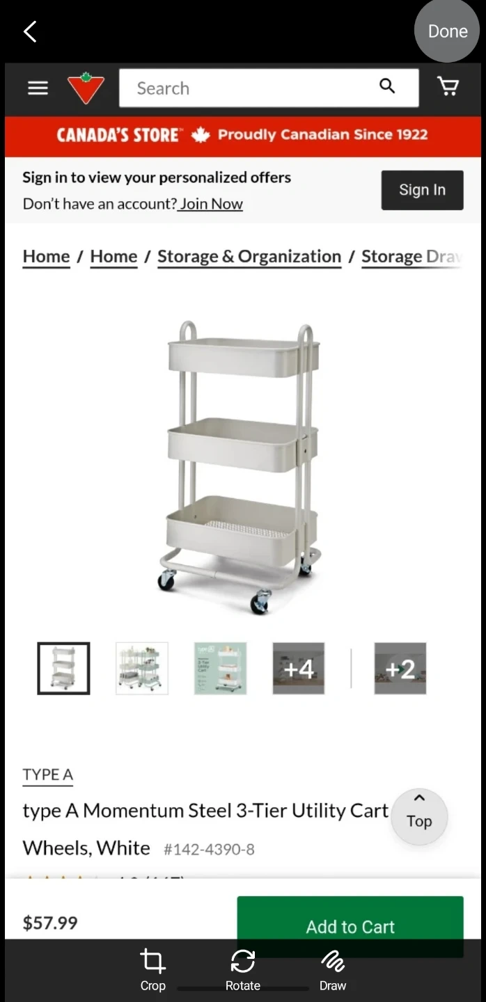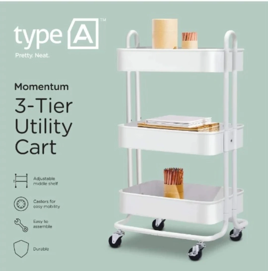 Selling a Type A Momentum 3-Tier Utility Cart in white. It's perfect for adding extra storage to any room! This cart features: