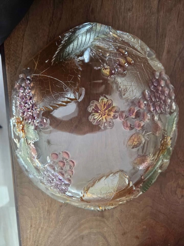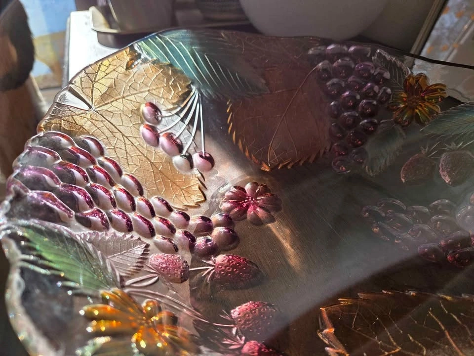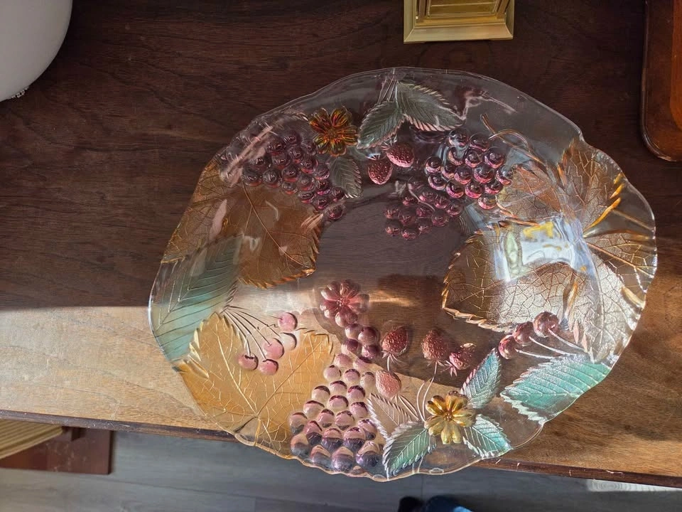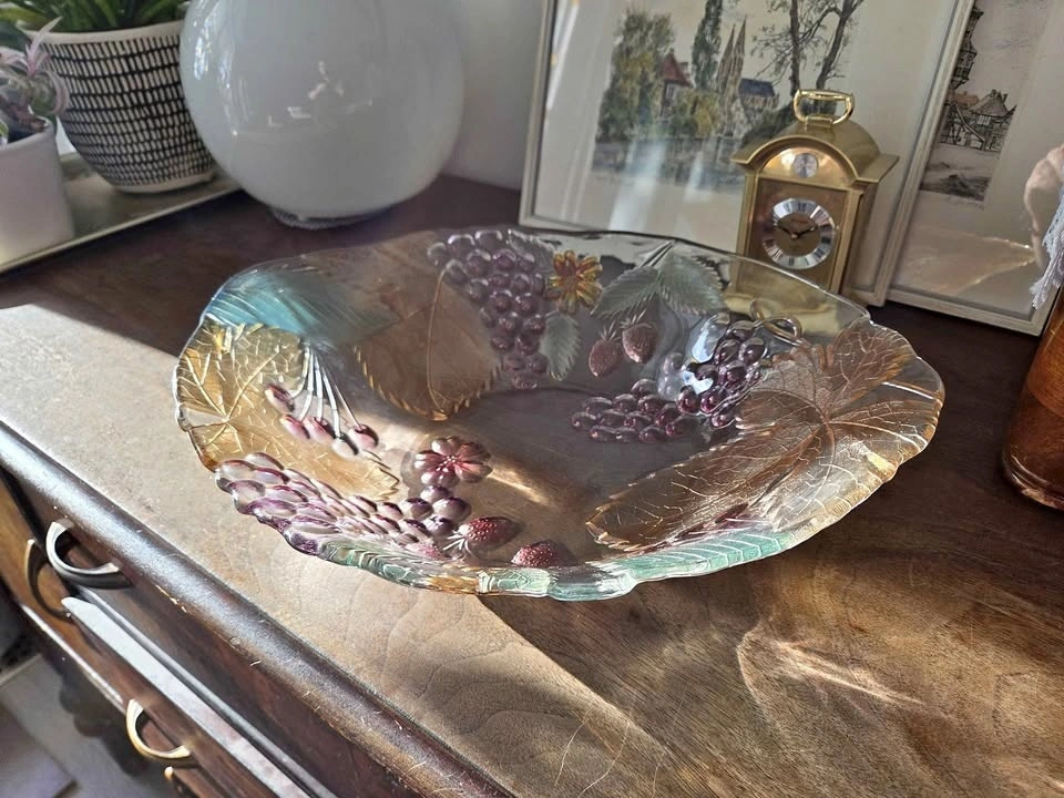 Vintage Multi-Color Glass Bowl with Fruit Motif