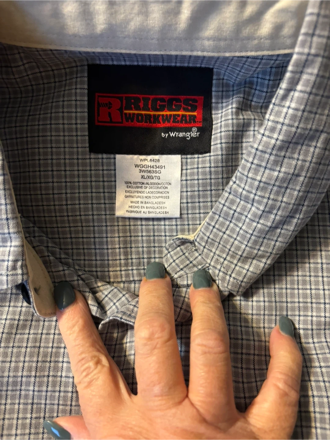 brand new RIGGS Workwear shirt by Wrangler. It's an XL size and features: