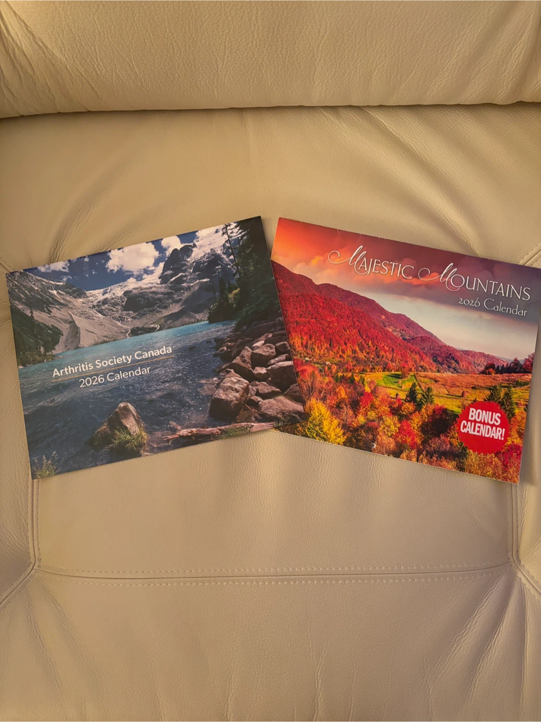 Two free 2026 calendars: Canada and the other is a Majestic Mountains.