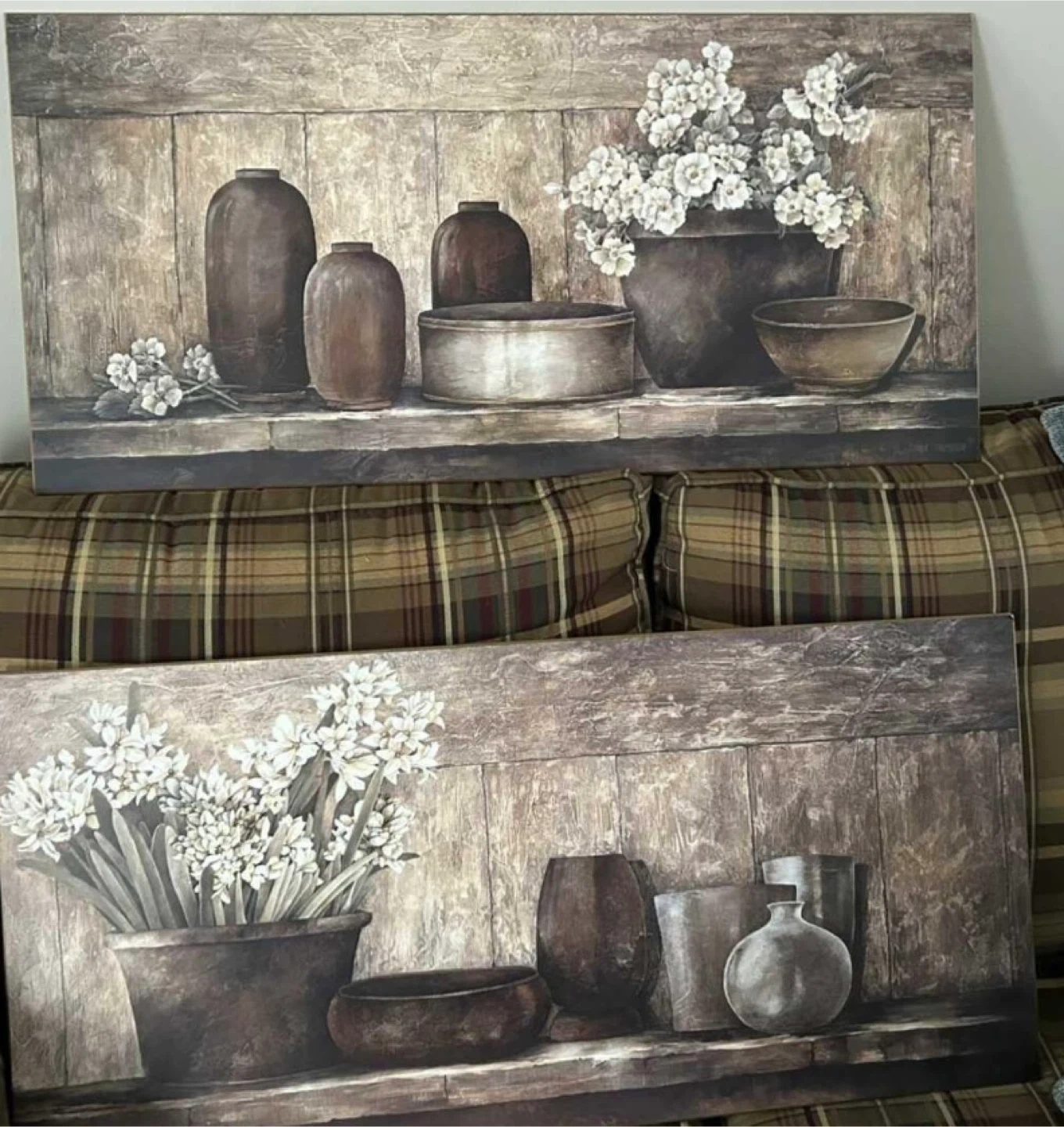 Selling a set of two Home Show wall art pieces. One is titled 'Primrose on a Sideboard' and the other is 'Hyacinth on a Sideboard'.