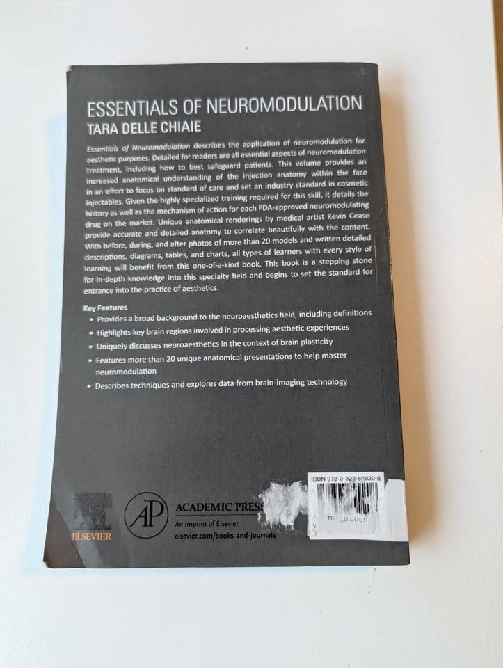 Selling a copy of Essentials of Neuromodulation by Tara Delle Chiaie (2021). This is the gold-standard textbook for aesthetic nurses and injectors, covering anatomy and safety for Botox/neuromodulators.