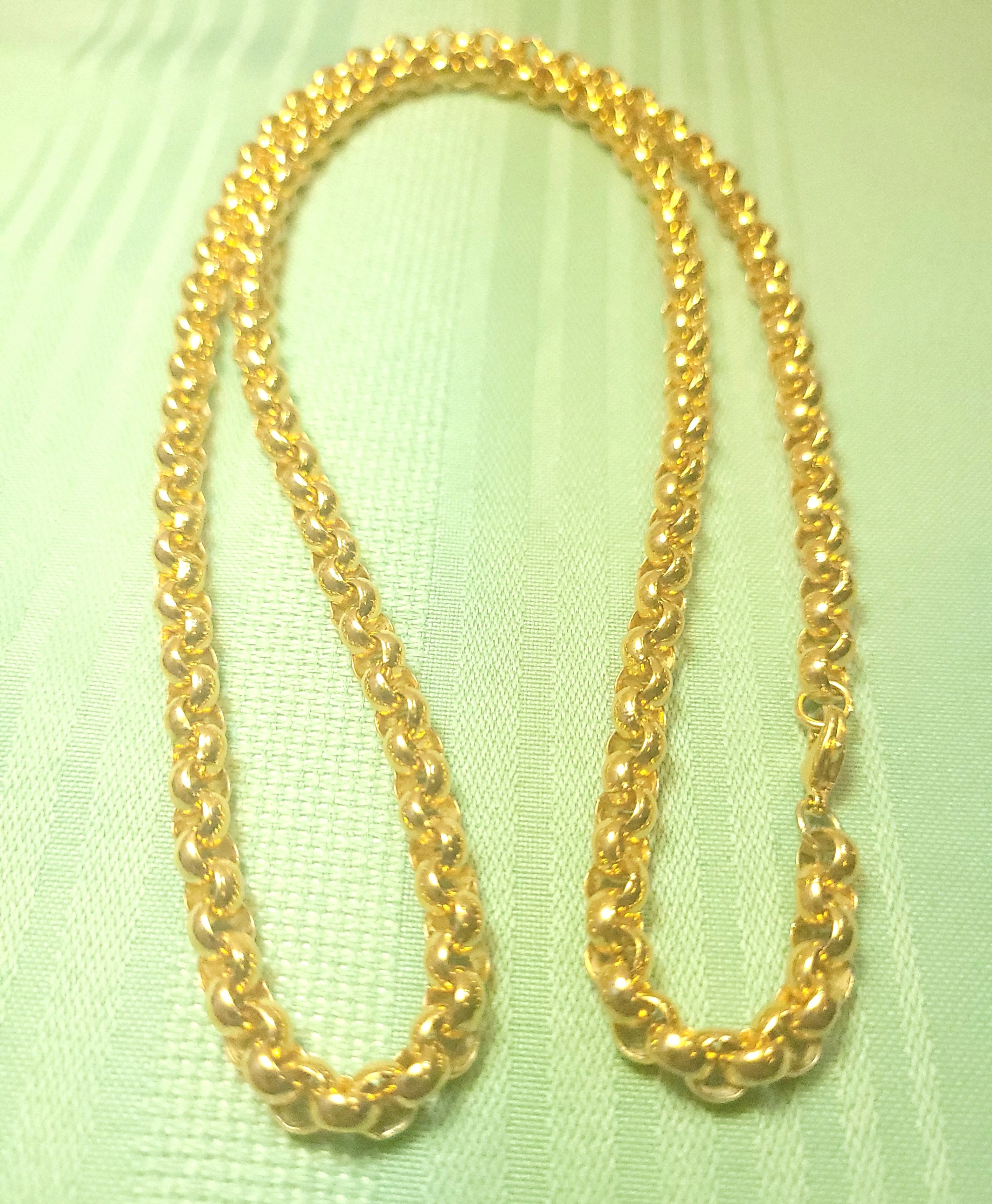 Add a touch of 1980s glamour to your collection with this substantial gold-toned rolo chain necklace. This piece features classic, rounded belcher-style links with a high-shine finish, making it perfect for layering or wearing as a standalone statement piece. At 29.5 inches, it sits at a graceful opera length.