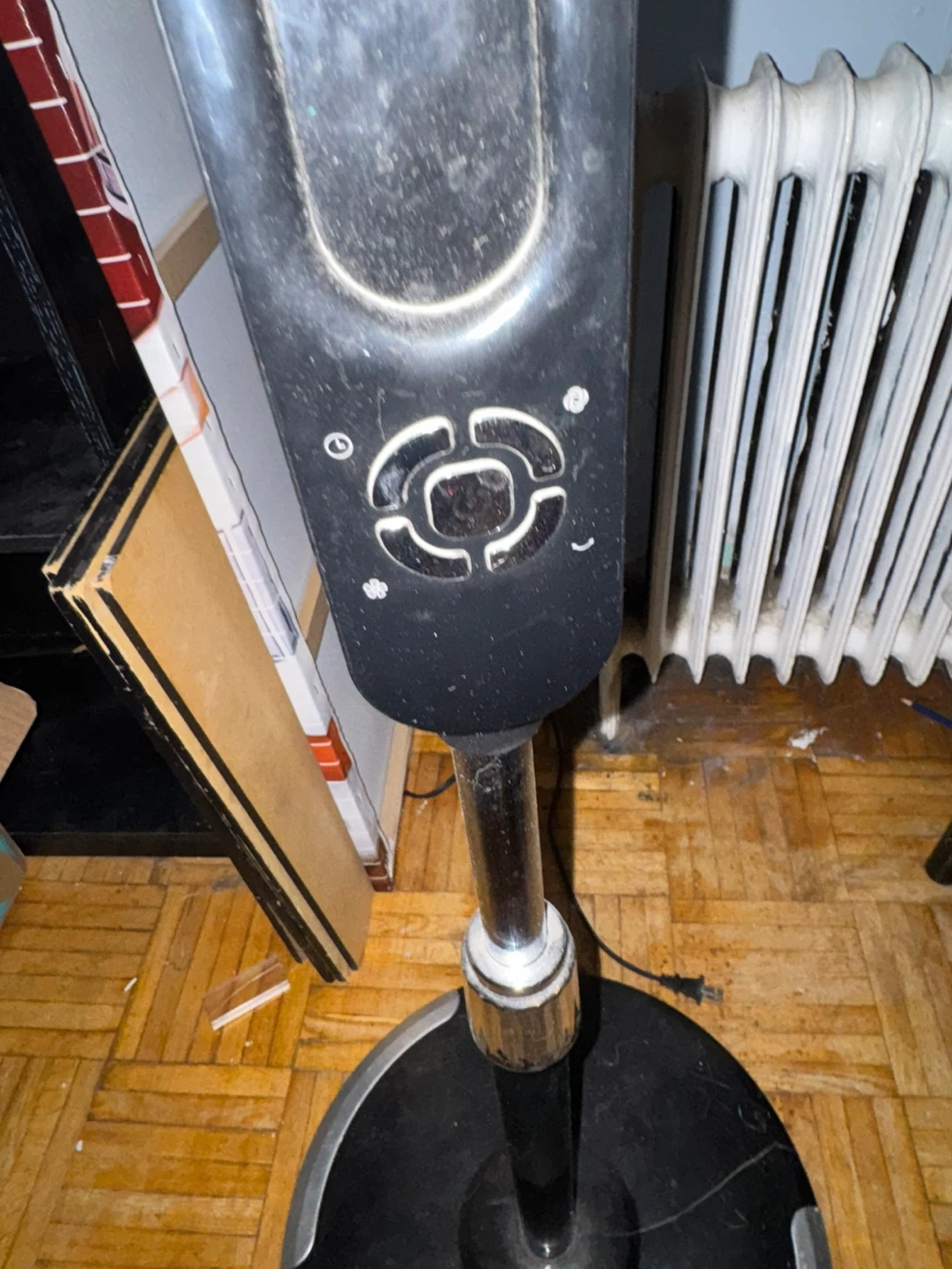 Selling an Ecohouzng stand fan in good condition. It features a black base and a silver metal grill. Perfect for keeping cool during the warmer months!