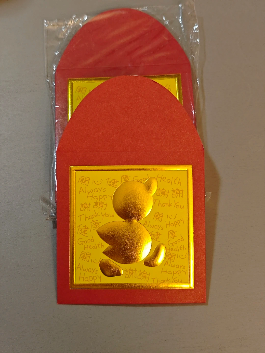 Red envelope with a golden duck🦆 design! The envelope has the words 'Good Health' and 'Thank You' written on it. Perfect for Lunar New Year!