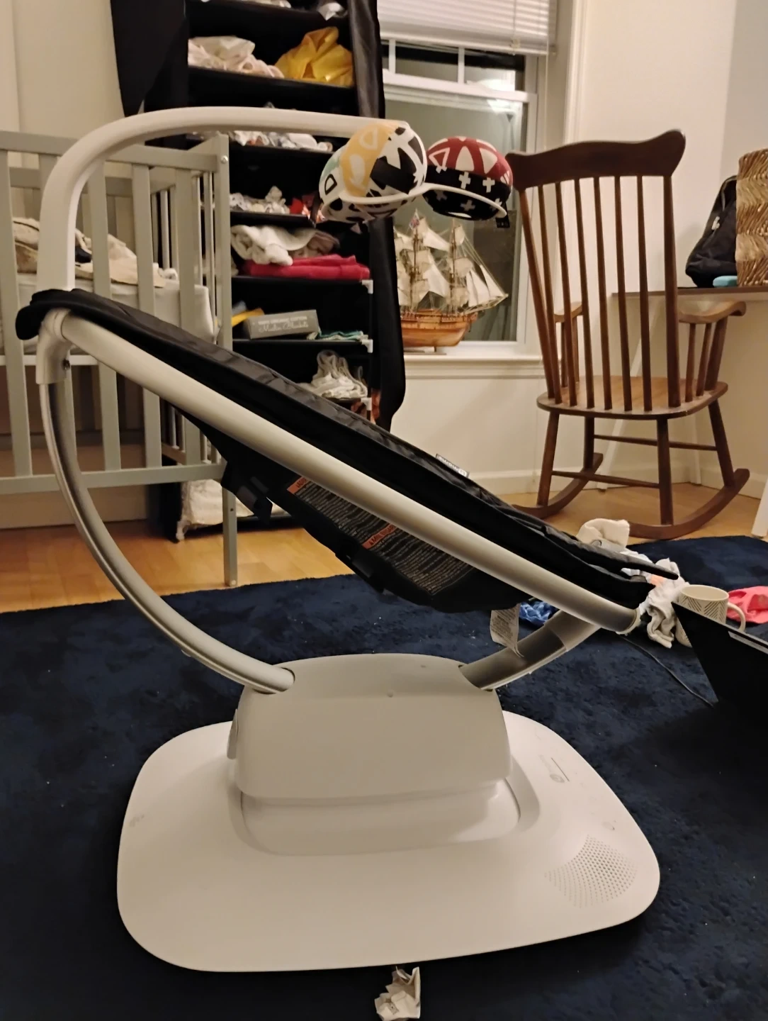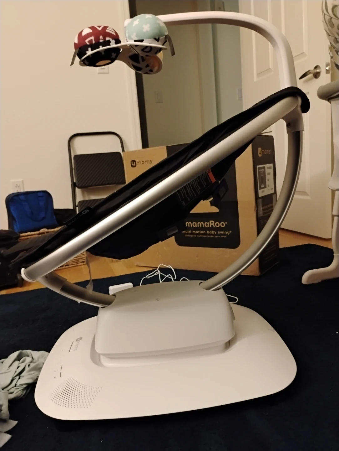 Selling a 4moms MamaRoo Multi-Motion Baby Swing (Part Number: 2000909), originally purchased in October 2025.