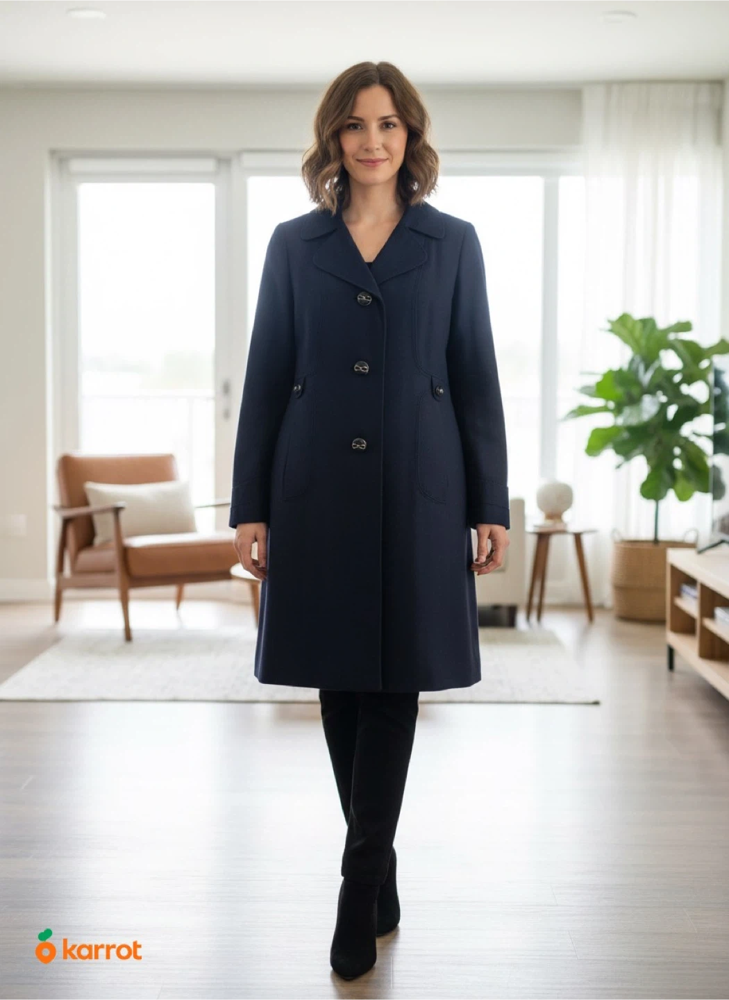 Coat, Pure New Wool, Navy Blue.