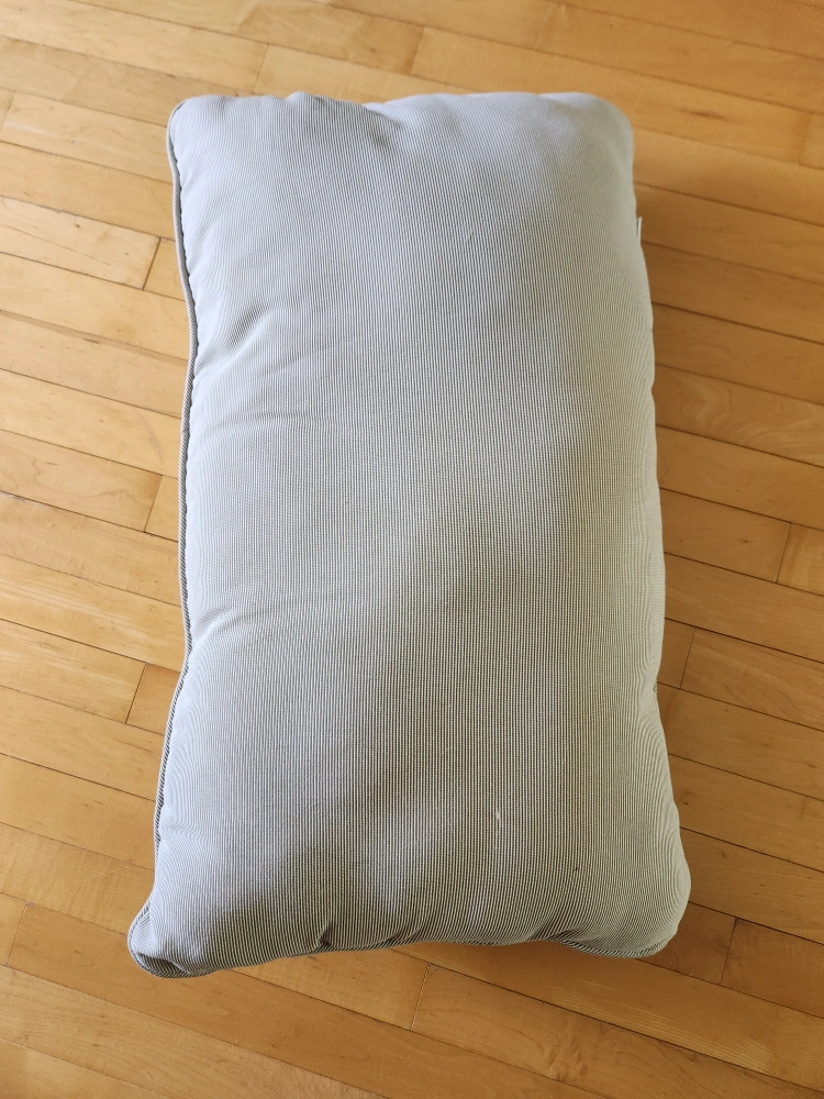 Used outdoor pillow. It has some stains from neighbour's tree. Approximately 18" x 23". Please see photos