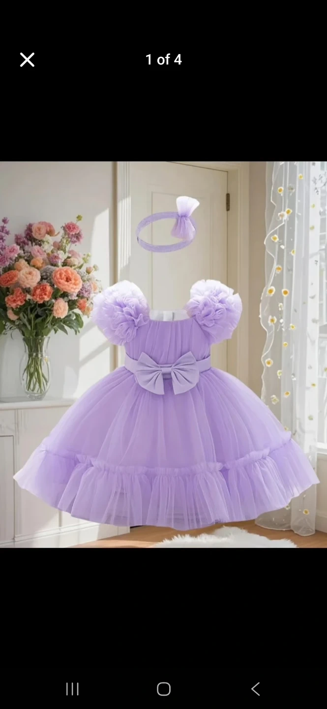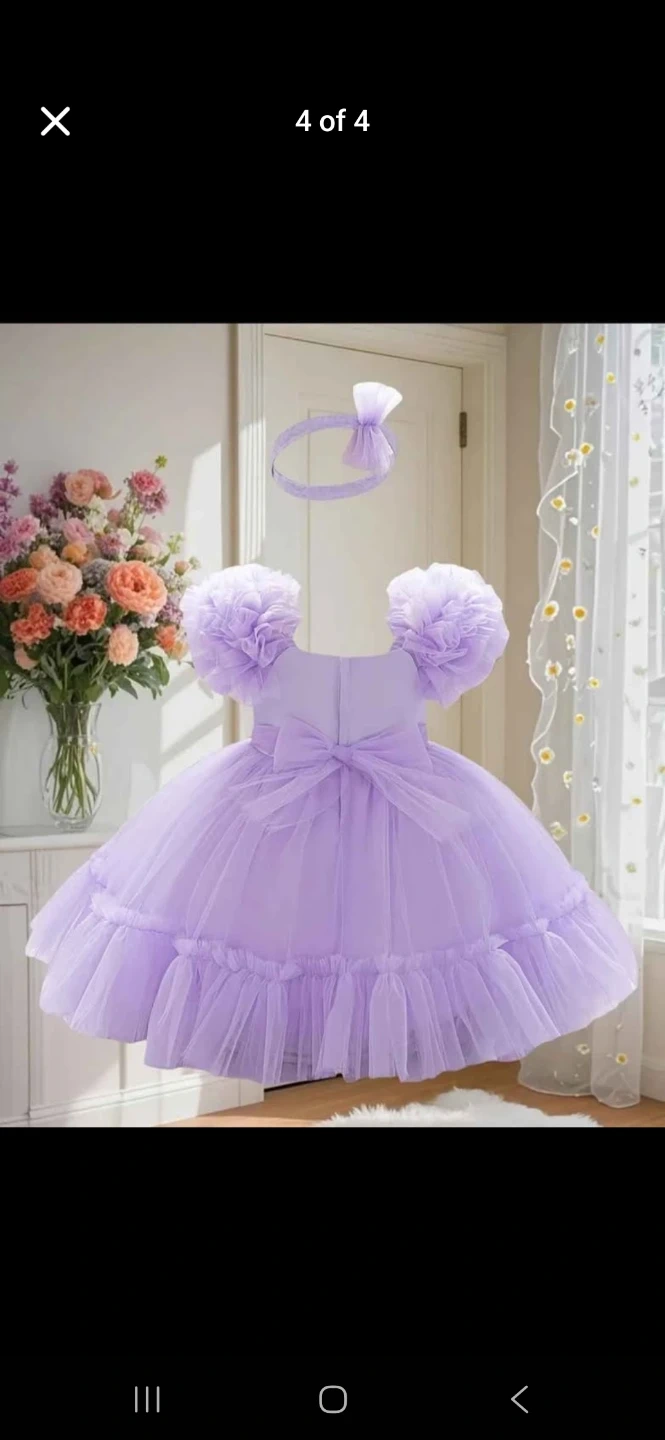 Selling a cute dress and shoes set! The shoes are a silvery grey colour and a size 3. The dress is a beautiful lavender colour with a matching headband. Perfect for a special occasion!