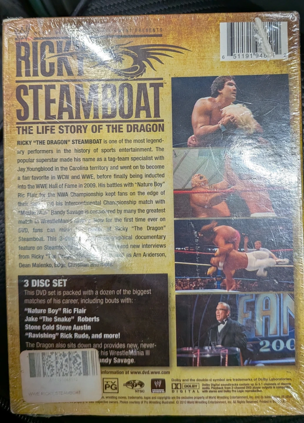 Selling a sealed copy of Ricky Steamboat: The Life Story of the Dragon on DVD. It's a 3-disc set that covers his career, including bouts with Nature Boy Ric Flair, Jake "The Snake" Roberts, Stone Cold Steve Austin, and more. A must-have for wrestling fans