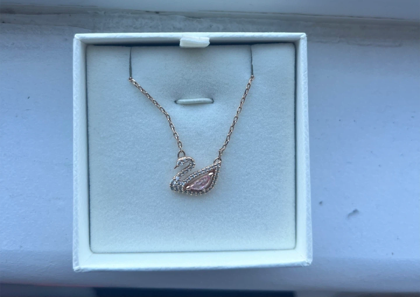 Selling a beautiful Swarovski swan necklace in rose gold! It comes with the original box, making it perfect as a gift for someone special or a treat for yourself