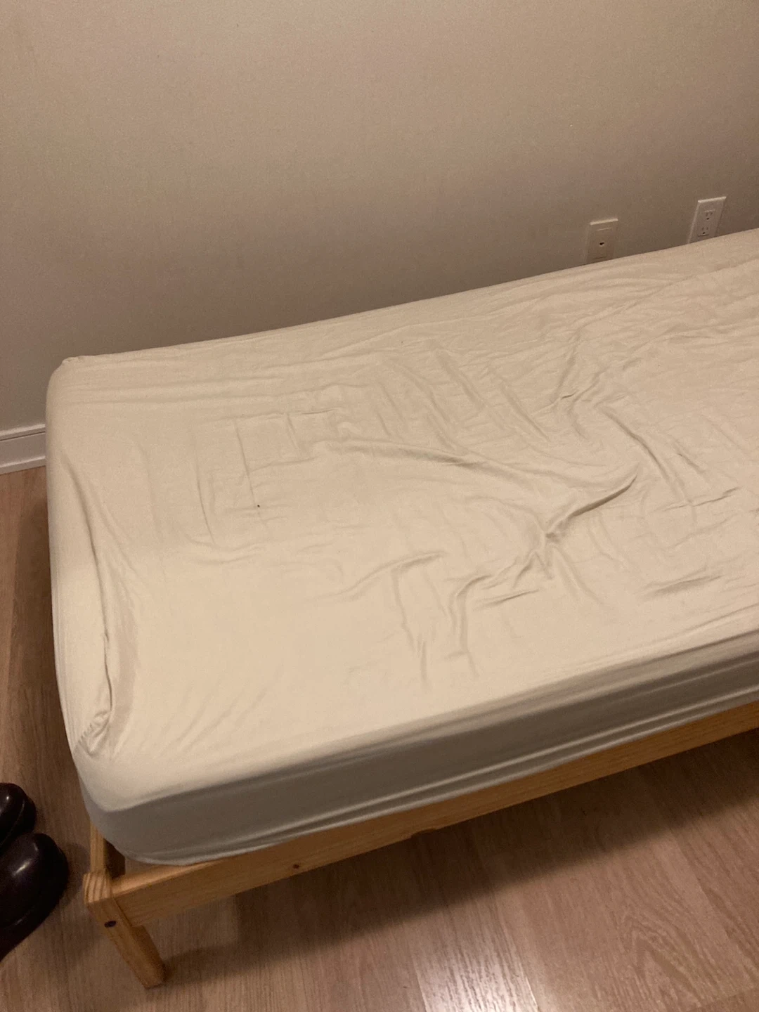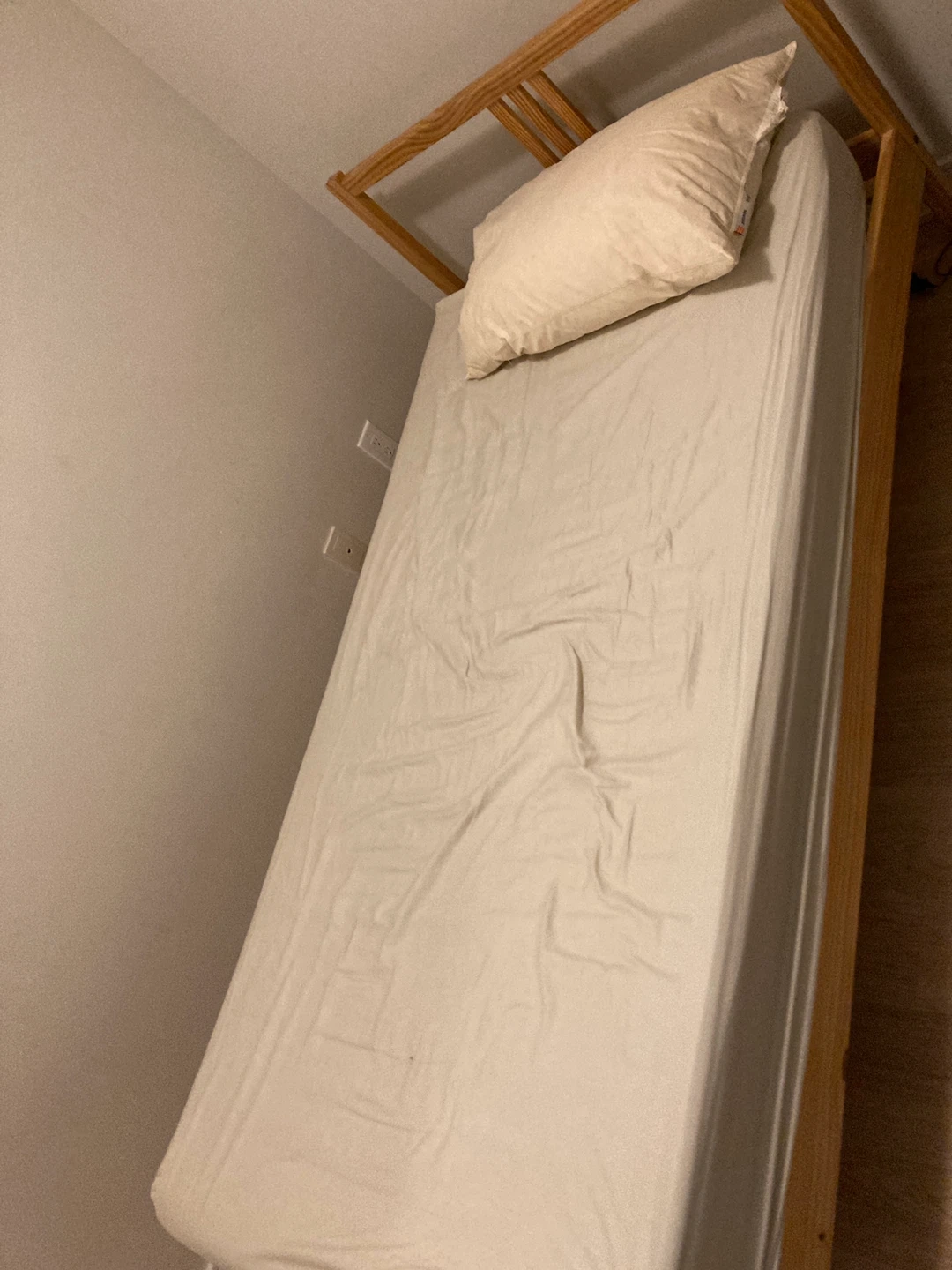 Selling a twin size bed frame with mattress and pillow. It's in good condition, and comes from a pet-free, smoke free, pest free home.