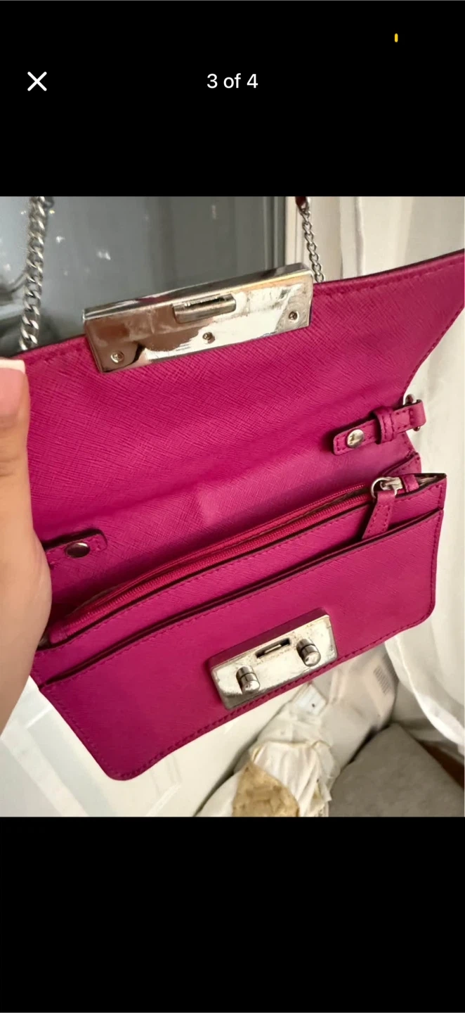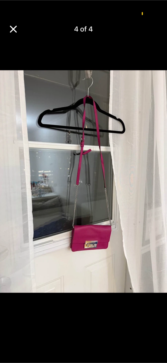 Selling a cute Michael Kors crossbody bag in a vibrant pink colour! It's perfect for adding a pop of colour to any outfit. The bag features a chain strap and a secure closure. It's in great condition and ready for a new owner!