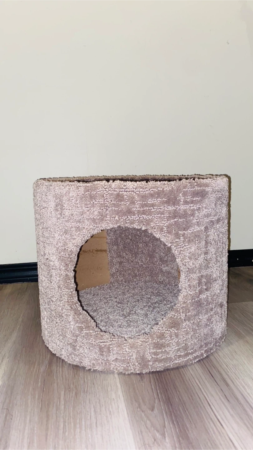 Selling a cozy carpeted cat bed cave! It's in great shape and perfect for your feline friend to curl up in. Provides a secure and comfortable space for your cat to rest and play
