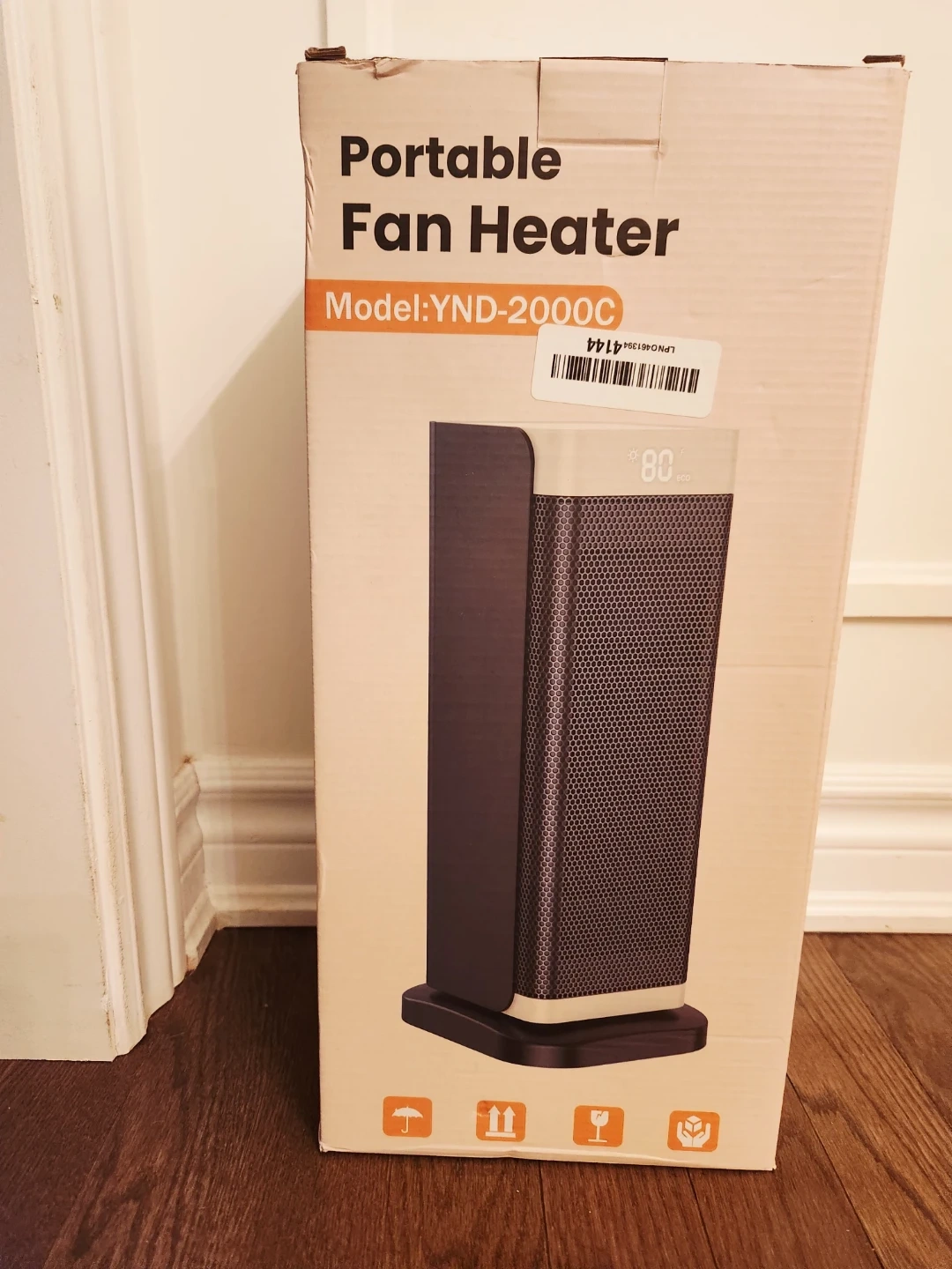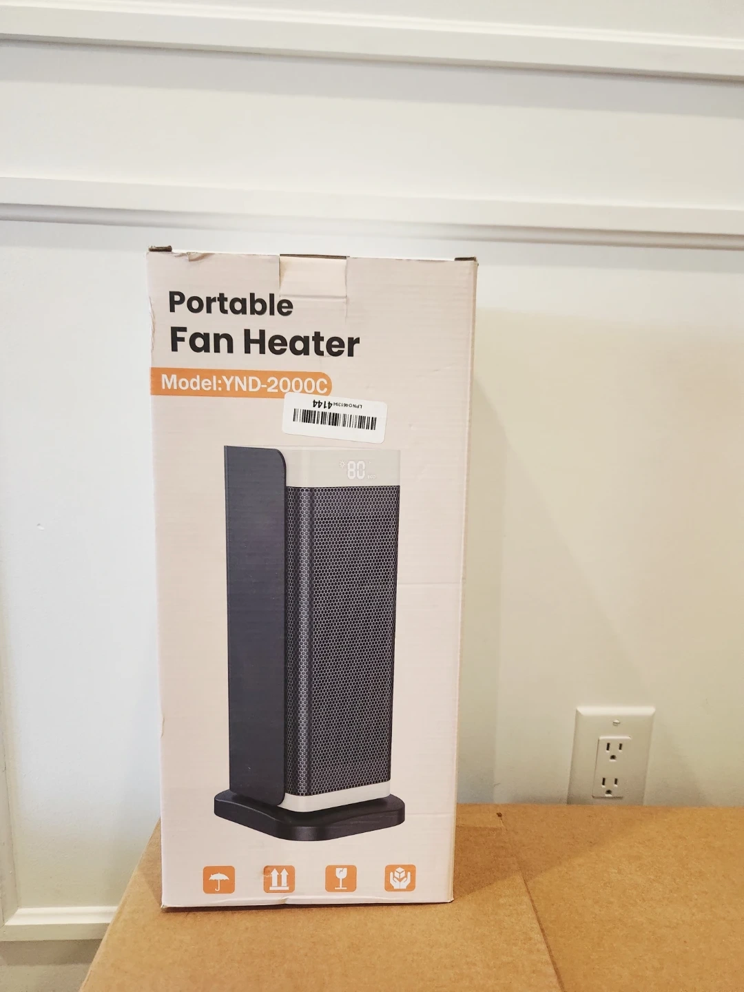 I'm selling a new portable fan heater, model YND-2000C. It's still in the box and ready to keep you warm! It features fast ceramic heating and comes with remote control convenience. The box is included