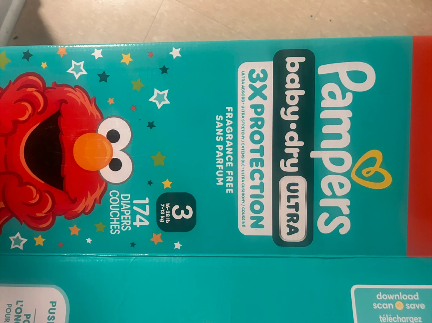 Three sealed packs in size 3, suitable for babies weighing 16-28 lbs (7-13 kg). They are fragrance-free and offer 3X protection with an ultra-stretch design for comfort and dryness