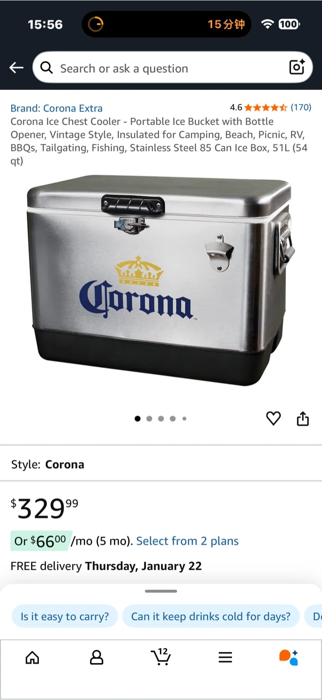 51L,Corona Ice Chest Cooler - Portable Ice Bucket