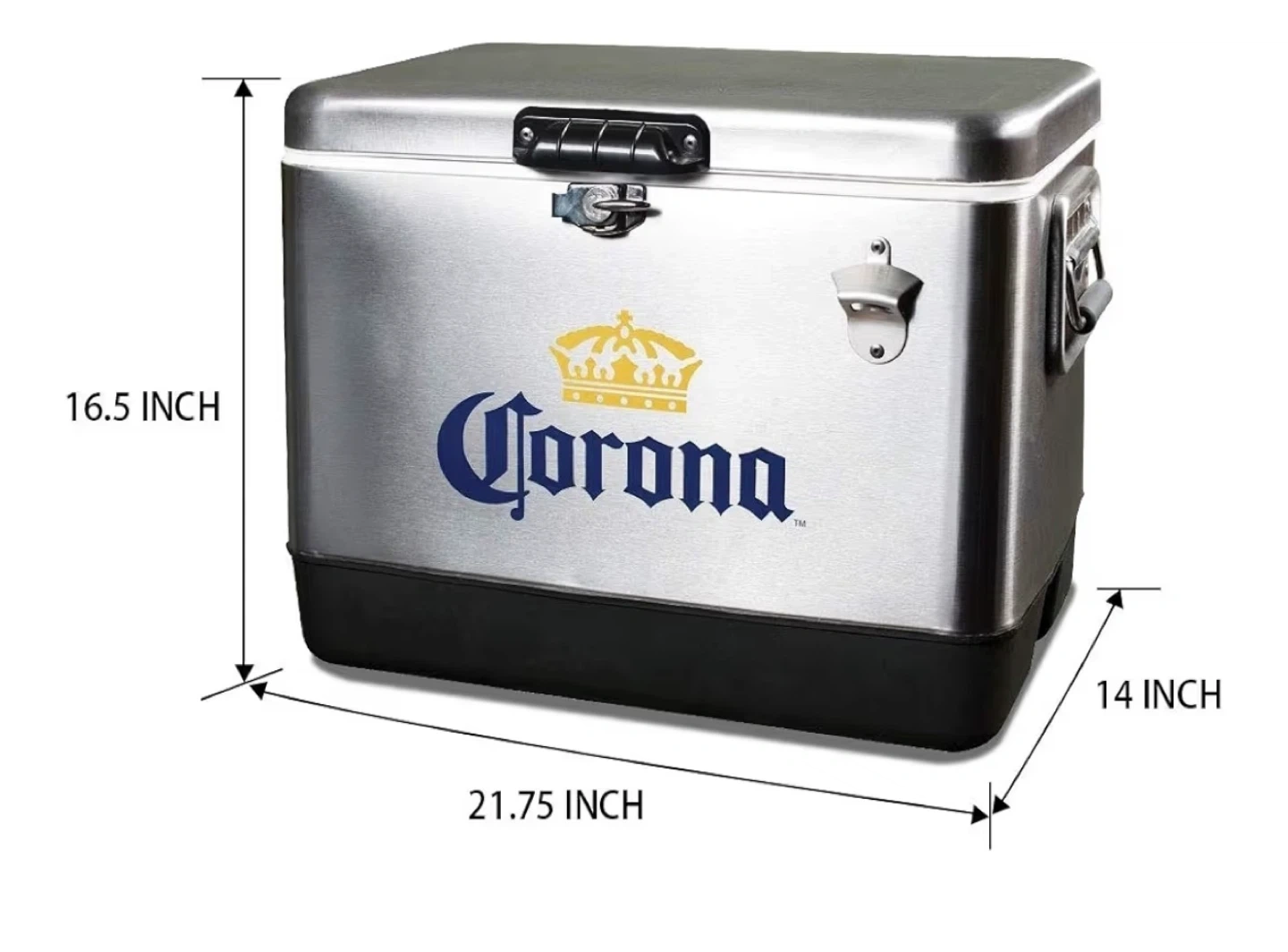 Corona Ice Chest Cooler - Portable Ice Bucket with Bottle Opener, Vintage Style, Insulated for Camping, Beach, Picnic, RV, BBQs, Tailgating, Fishing, Stainless Steel 85 Can Ice Box, 51L (54 qt)