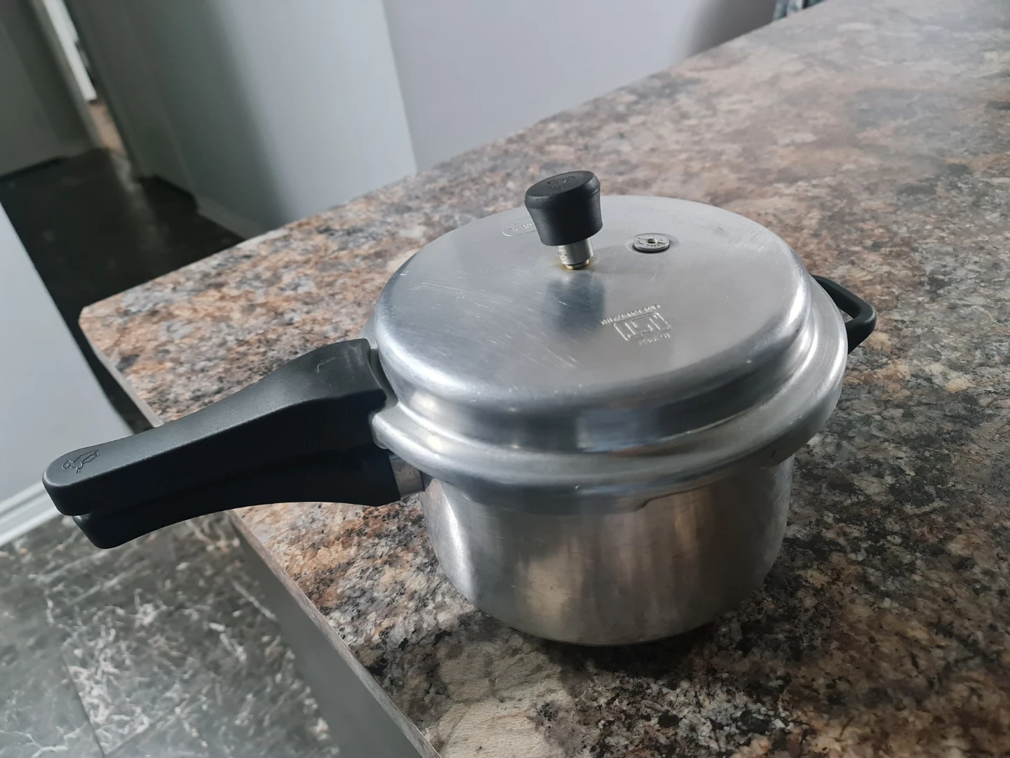 Selling a used aluminum pressure cooker. It's in good condition and ready for your kitchen! Perfect for making quick and easy meals.