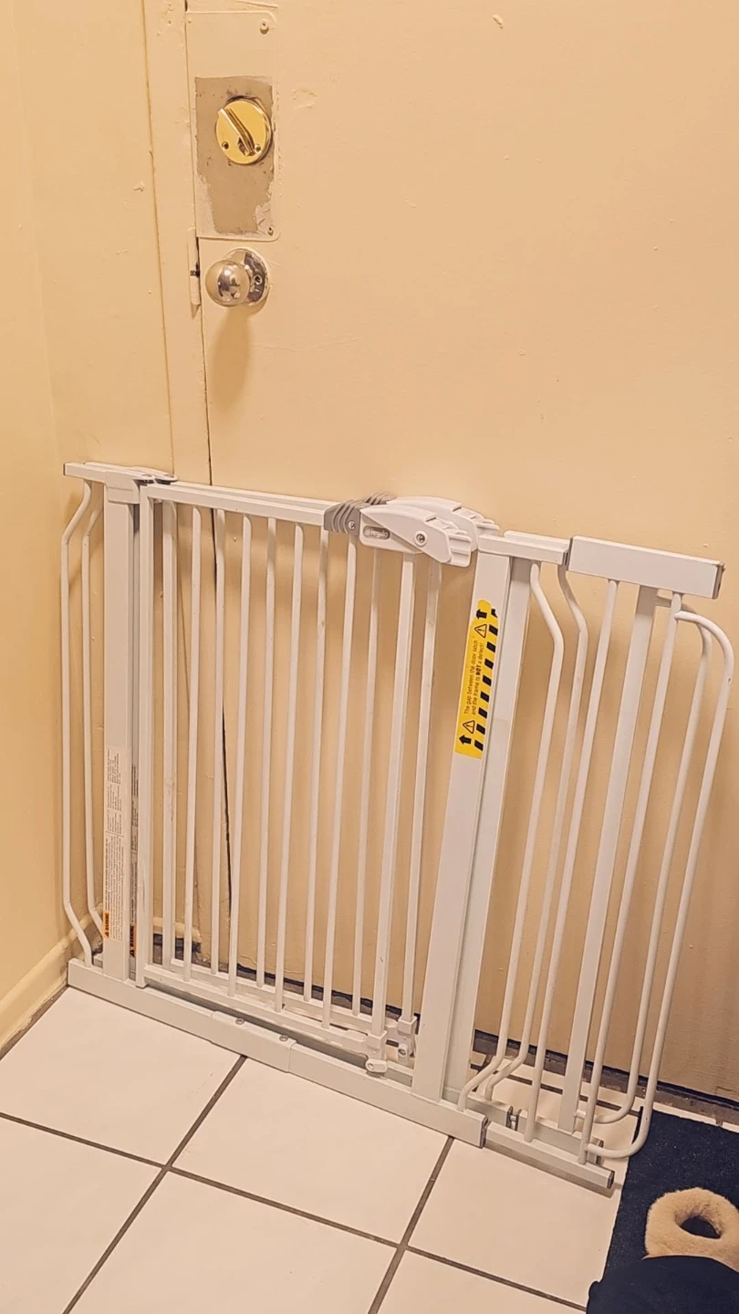 Selling a baby gate in good condition. It's white and comes with all parts - the one gate hardware rubber is cmming off shown in the photos and one screw i cant find since we moved and may have gone in the move somewhere. Perfect for keeping little ones safe! Extra Parts can be bought from Amazon if needed
