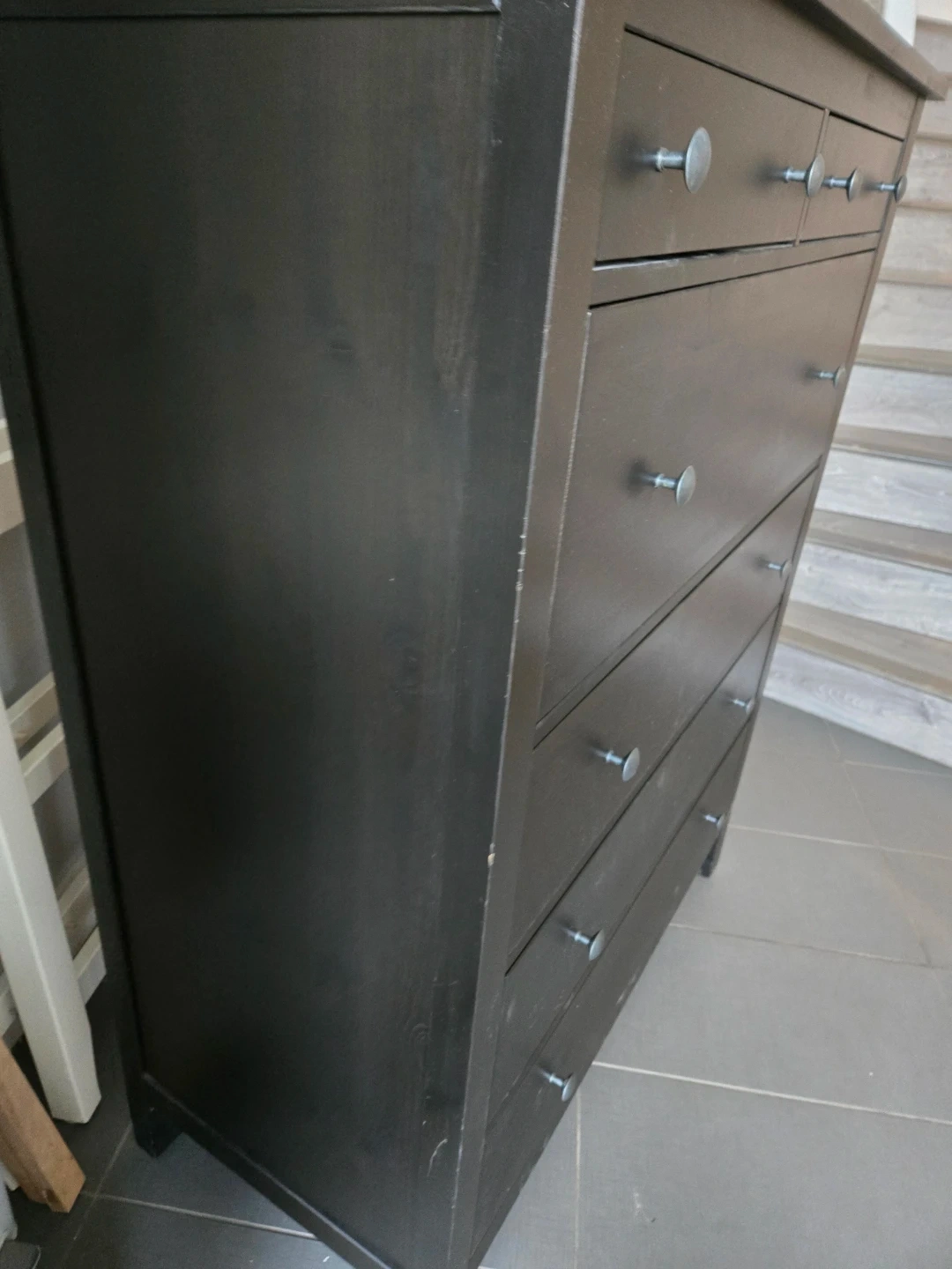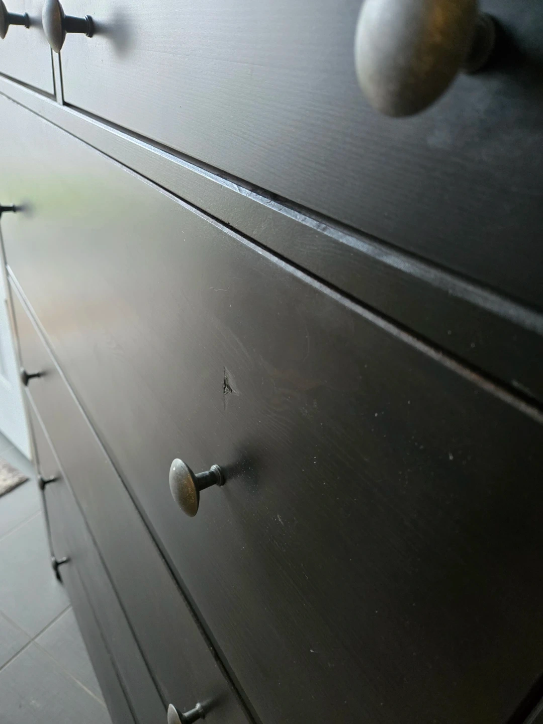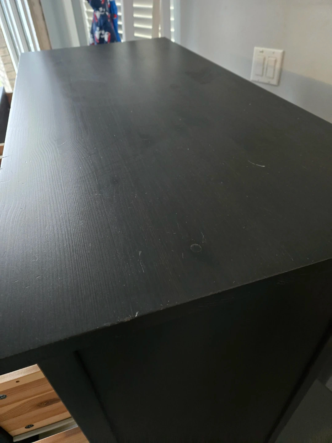The frame has some minor nicks and marks here and there but nothing major. 1 sow dent on one of the drawer.