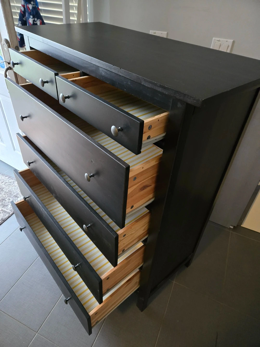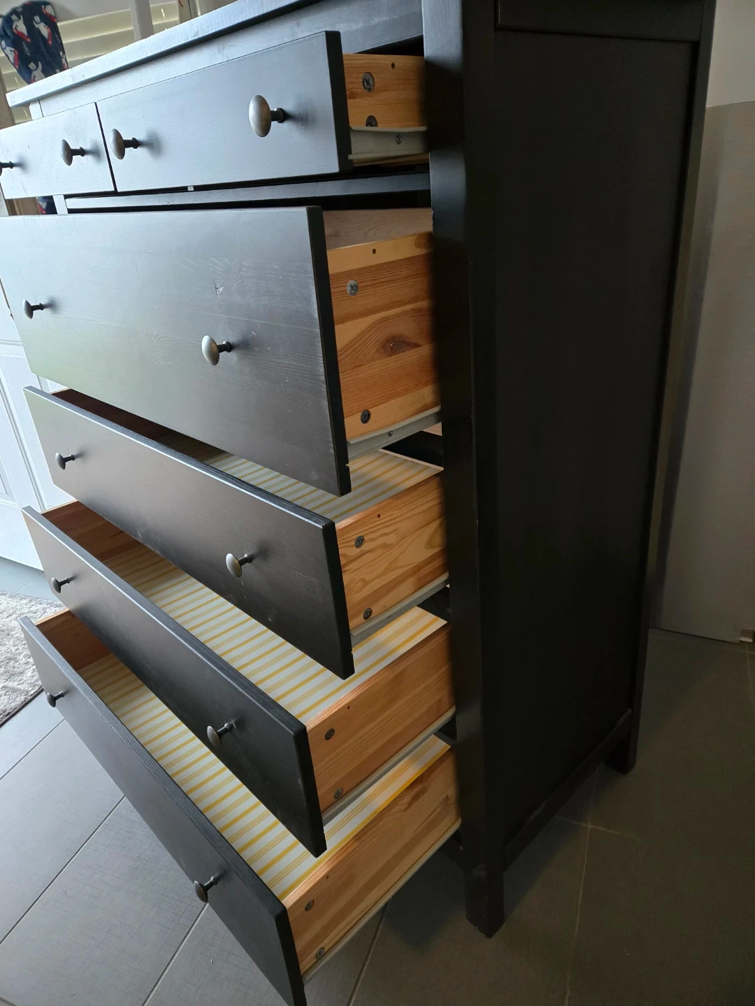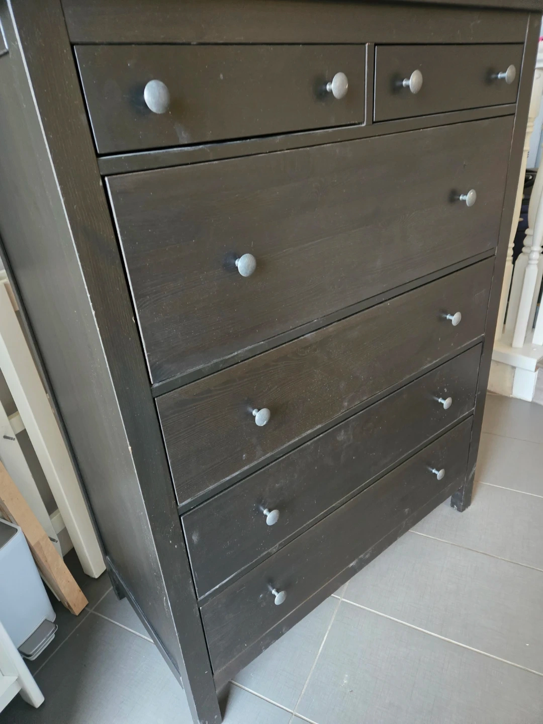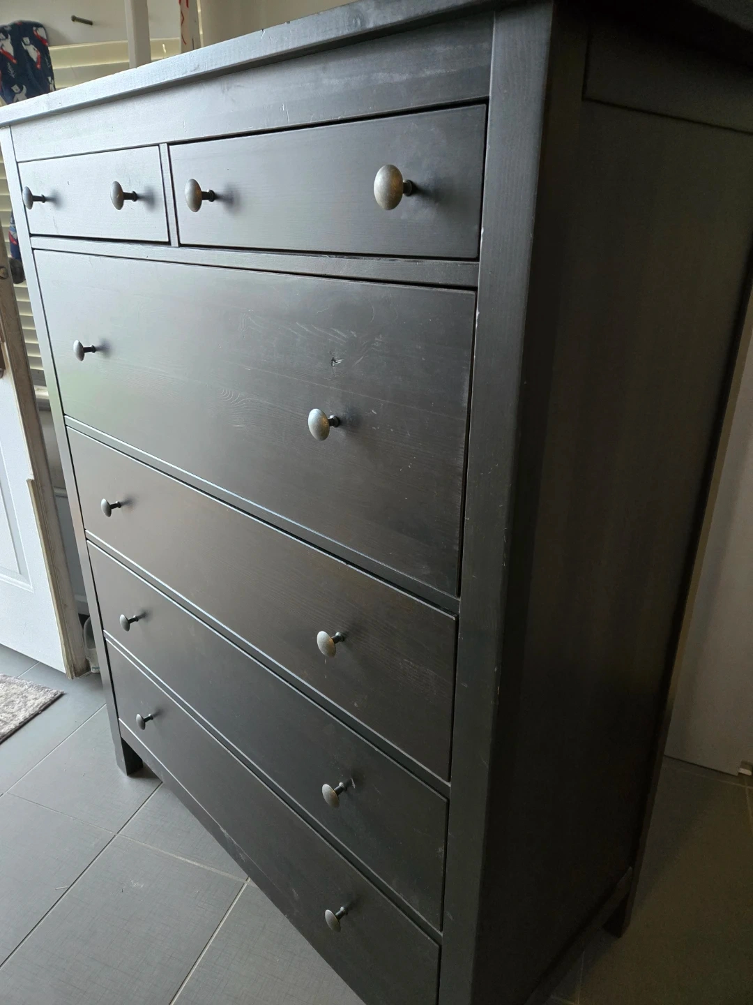 The frame has some minor nicks and marks here and there but nothing major. 1 sow dent on one of the drawer.