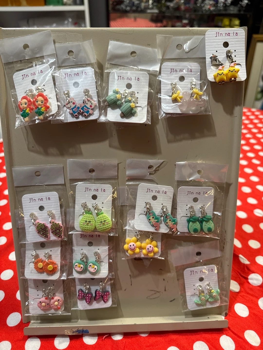 Check out these super cute cartoon character earrings! They are brand new and still in their packaging. There are many different designs to choose from, like mermaids, hippos, cacti, stars, flowers, penguins, and more! Perfect for adding a fun touch to any outfit
