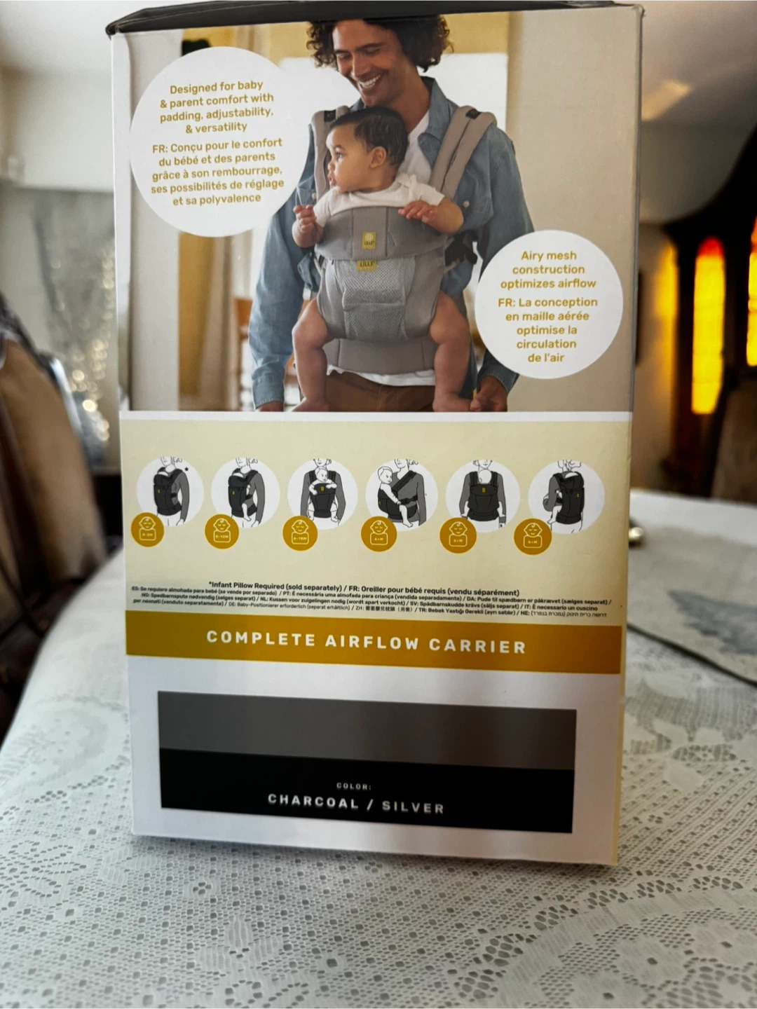 Keep your little one close and comfortable with this Lillebaby Complete Airflow baby carrier! It's designed for newborns up to 48 months (7-45 lbs). The carrier comes in a stylish charcoal silver colour and features an airy mesh construction to optimize airflow. It also has adjustable straps and padding for a comfortable fit for both you and your baby