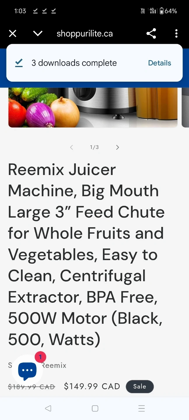 Selling a Reemix Juicer Machine. It features a big mouth, large 3" feed chute for whole fruits and vegetables. It's easy to clean and is a centrifugal extractor. The juicer is BPA free and has a 500W motor.