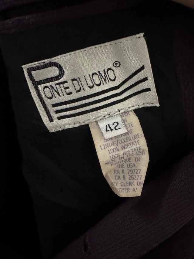Good condition, I recommend ironing it before wearing it, as we kept it neatly in storage. Size 42 Men’s, Made in USA Elevate your wardrobe with this stylish Ponte di Uomo purple blazer, a statement piece in a men's size 42. This blazer is in good condition, perfect for adding a touch of sophistication to any outfit. While it has been previously loved, it maintains its charm and distinctive look. Here are some details about the blazer: * Brand: Ponte di Uomo * Size: Men's 42 * Colour: Purple * Material: See label in photos for material details If you're seeing this ad, the blazer is still available!