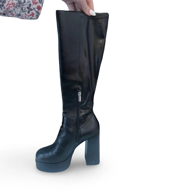 ALDO Albie knee-high platform boots from the Pillow Walk collection, designed for extra comfort with cushioned, padded insoles. Sleek and bold with a chunky block heel. Worn only once and still in great condition. There is a small cosmetic scratch on one of the heels, but it does not affect wear.