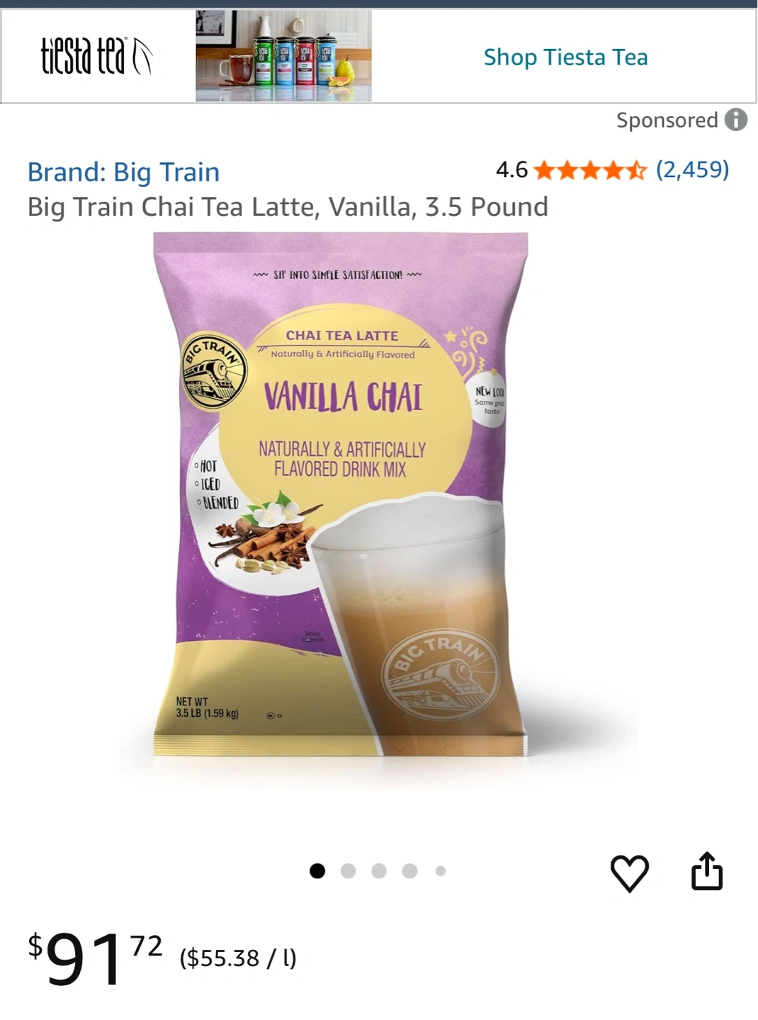 Big Train Vanilla Chai Tea Latte Mix, 3.5 lb