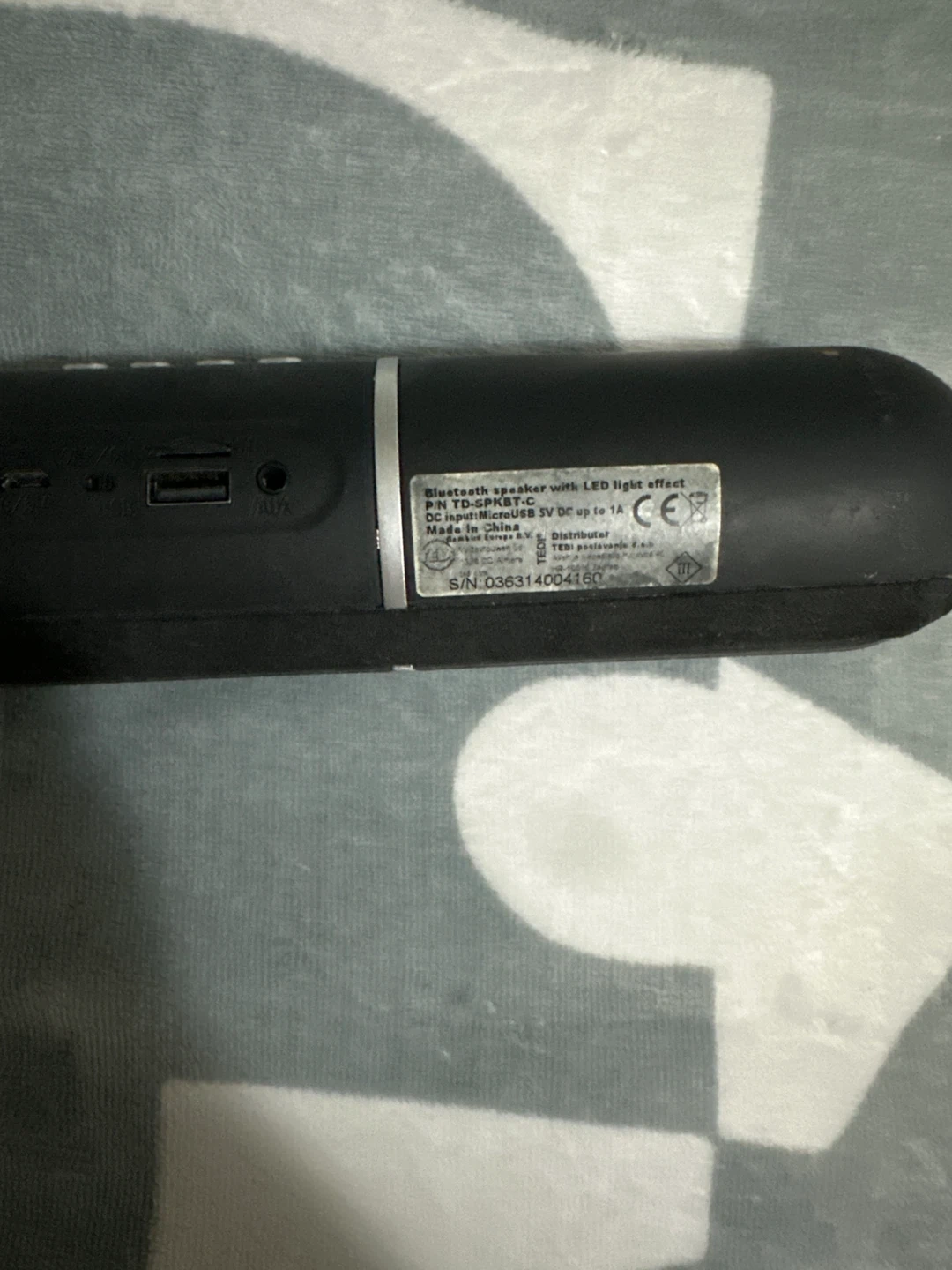 Selling a Bluetooth speaker with an LED light effect! It's in great condition and ready to use. It requires a MicroUSB 5V DC input up to 1A for power.