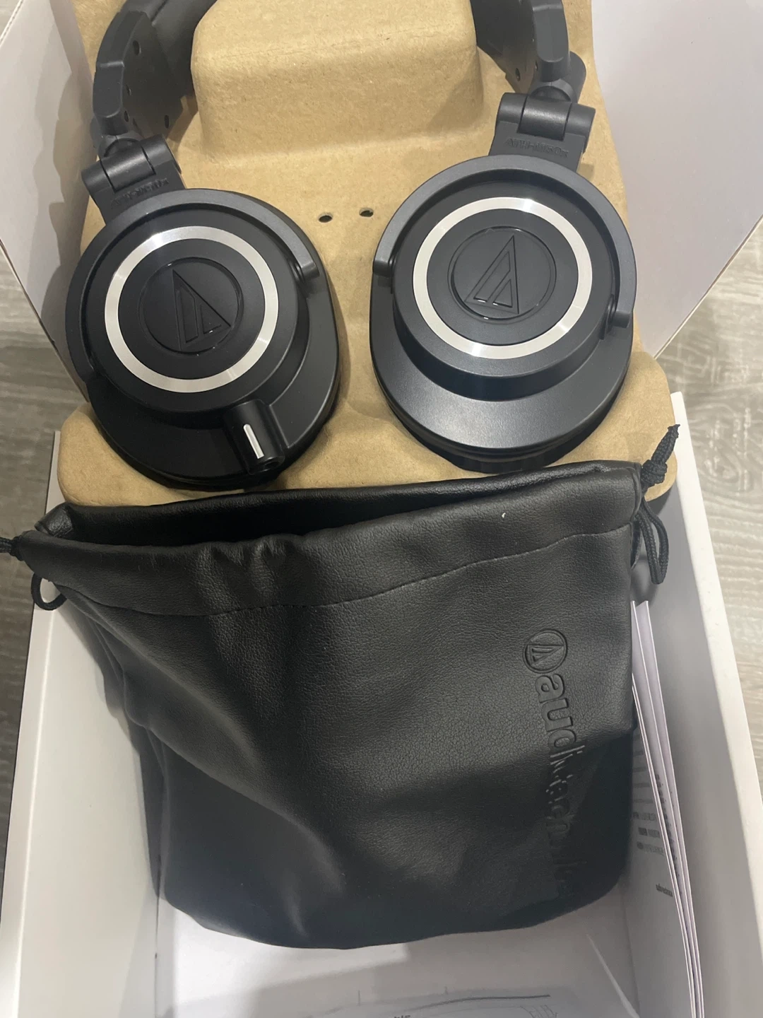 Selling a pair of Audio-Technica ATH-M50x headphones in excellent condition! These professional monitor headphones come with their original box and included components like the carrying pouch and cables. Great for studio monitoring or just enjoying your favourite tunes with clear, accurate sound