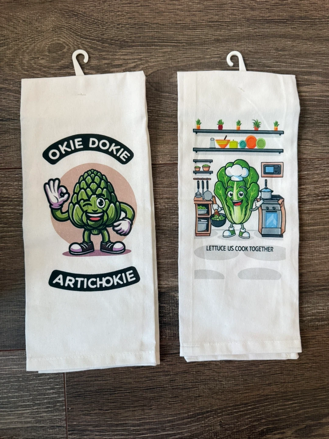 Add a touch of fun to your kitchen with these adorable kitchen towels! The set includes two towels, one featuring an artichoke character and the other a lettuce character. They're sure to bring a smile to your face while you cook