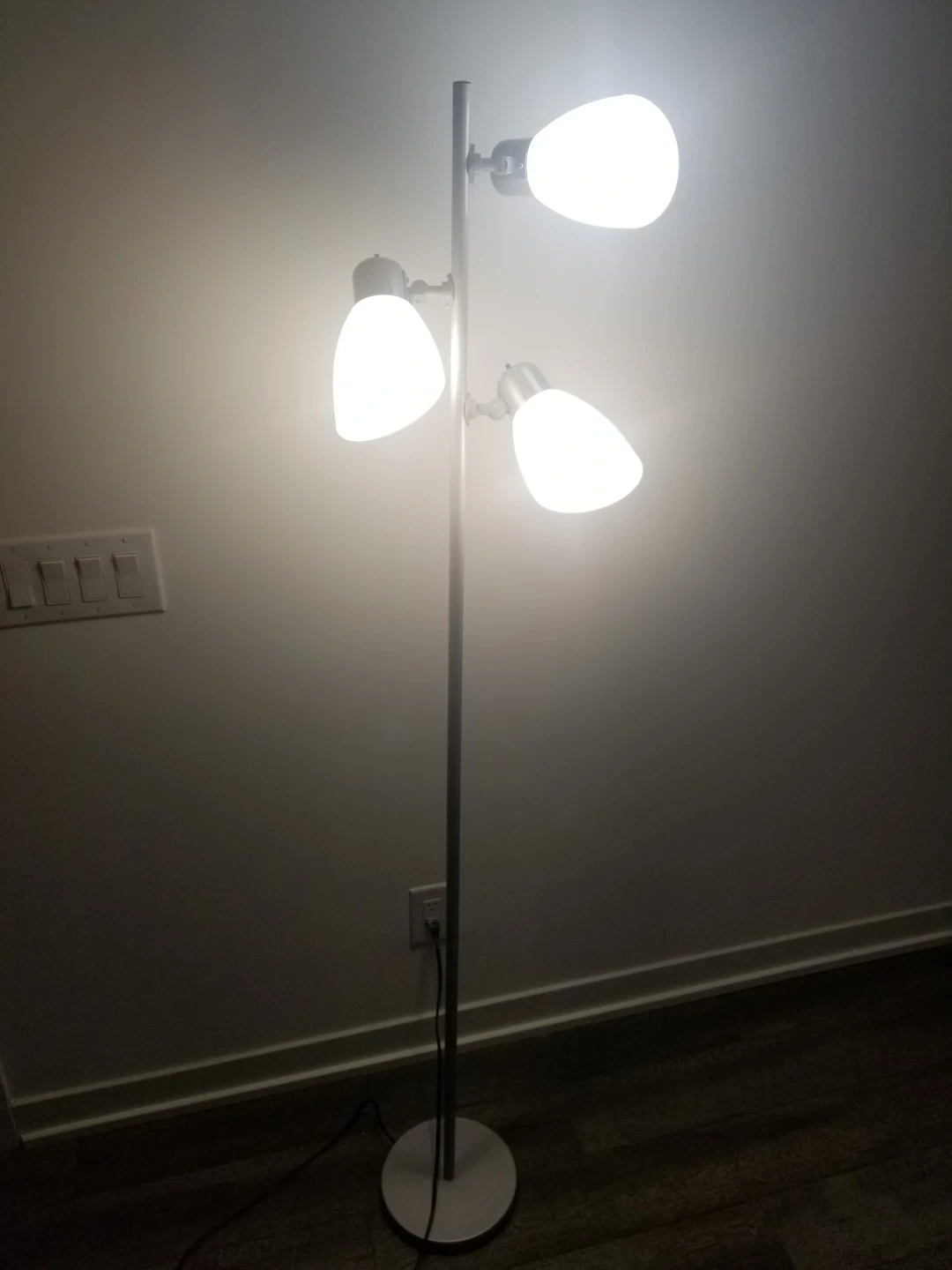 Looking to brighten up a room? This floor lamp from is just the ticket! It features three adjustable lights, so you can direct the light exactly where you need it. It's in great condition and ready to light up your space