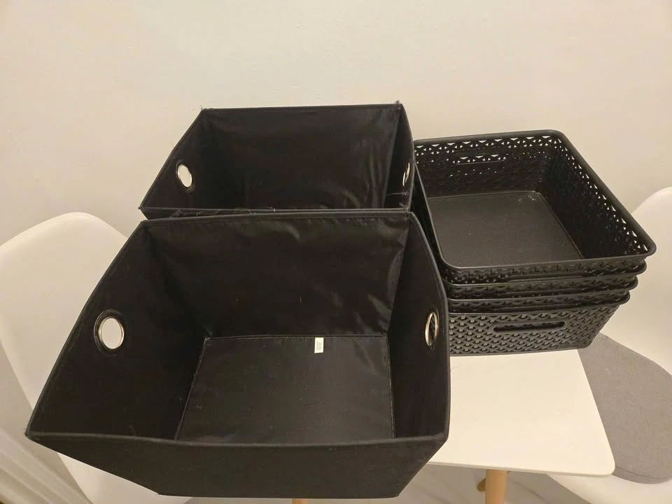 • Fabric storage bins (multiple sizes/colors)