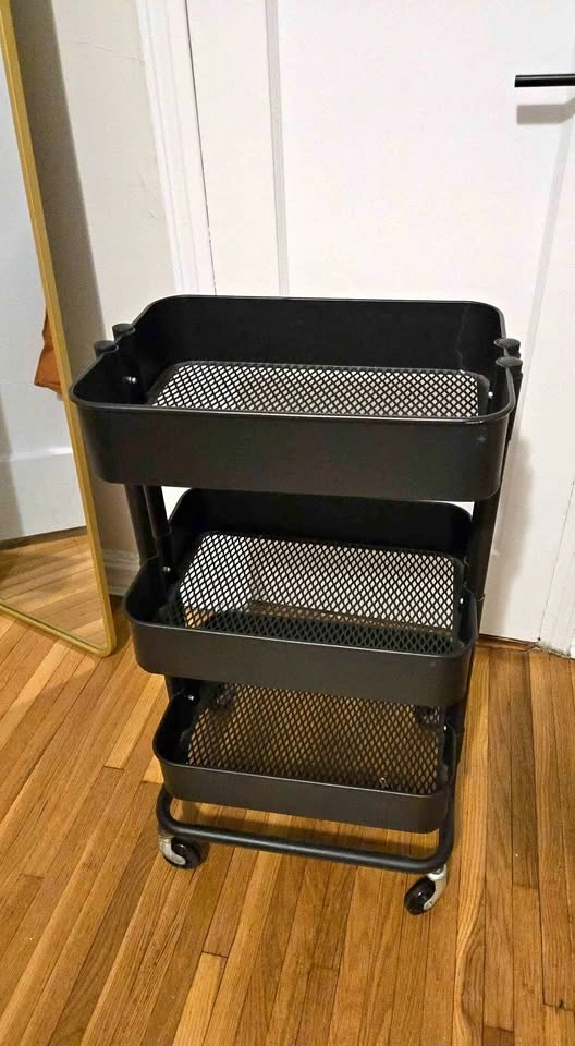 3-Tier Rolling Storage Cart – Black Metal