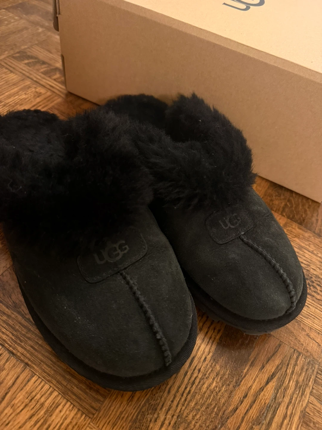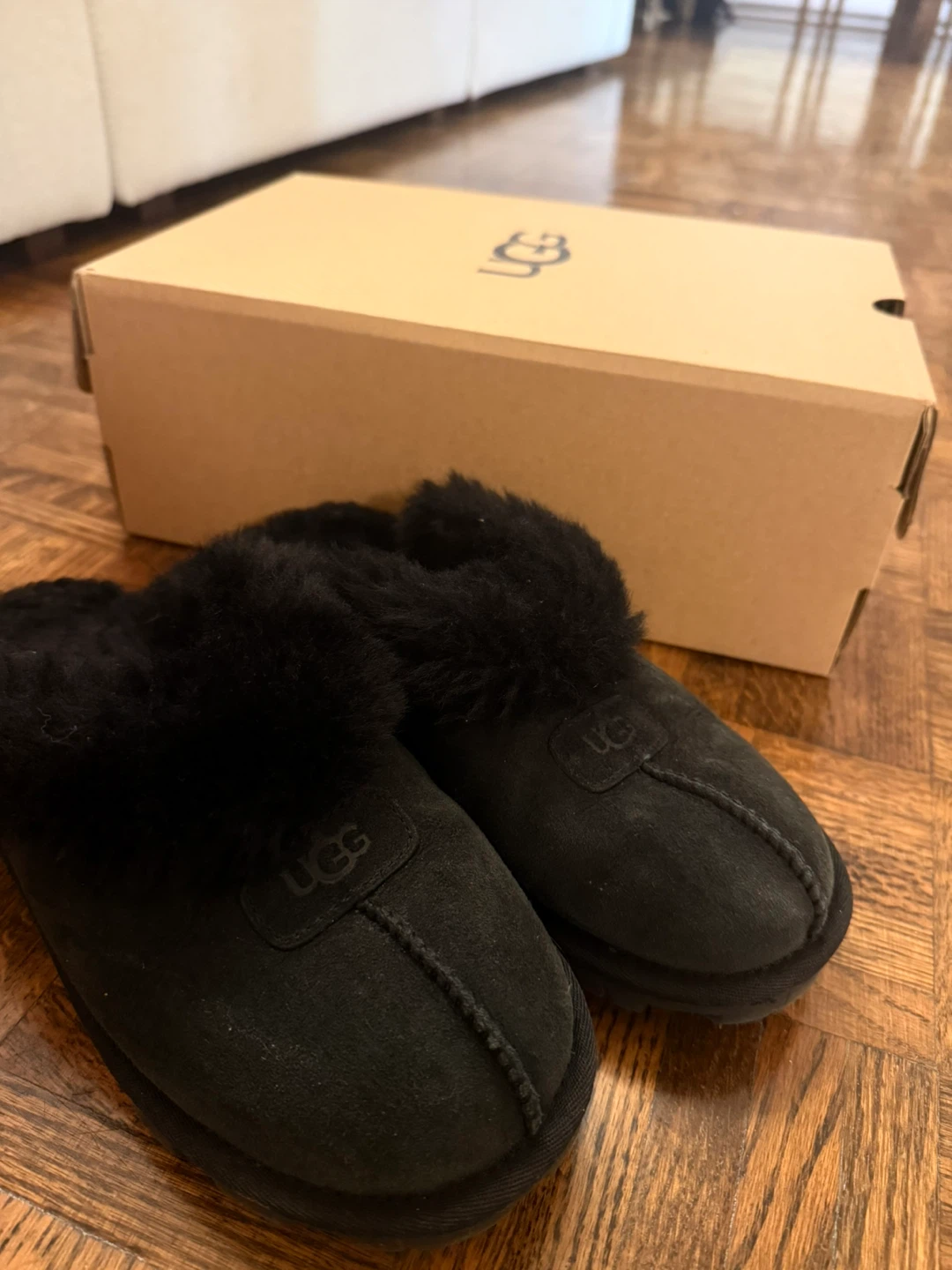 Selling a pair of UGG women's slippers in black, size 6 (EU 37)