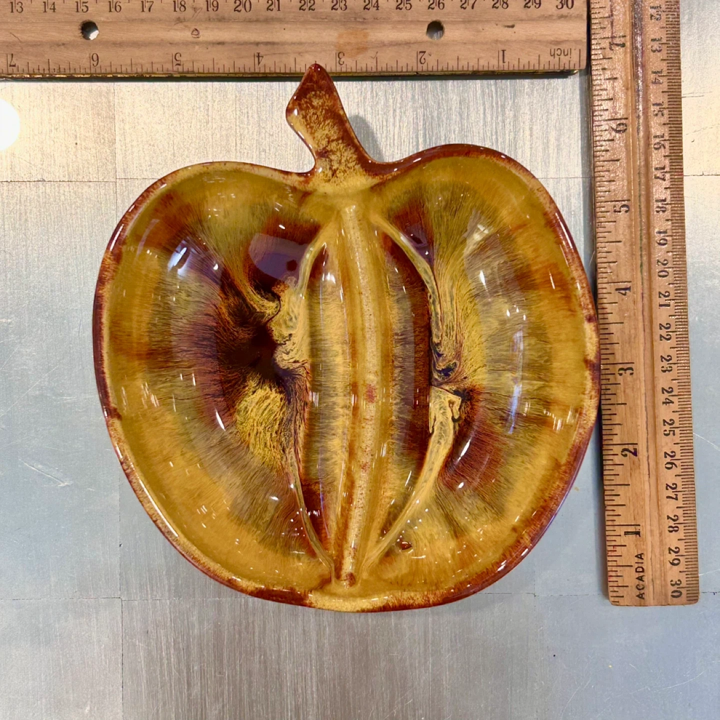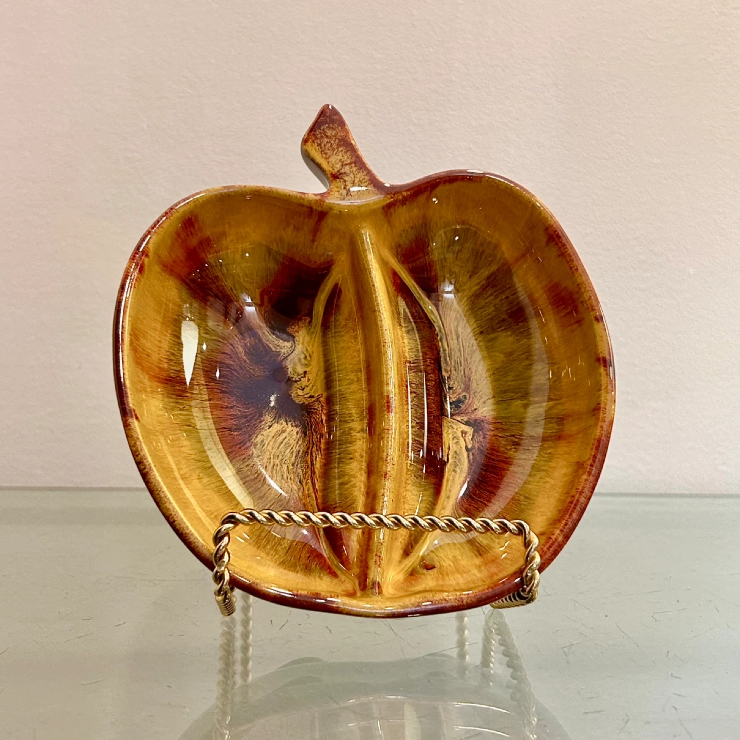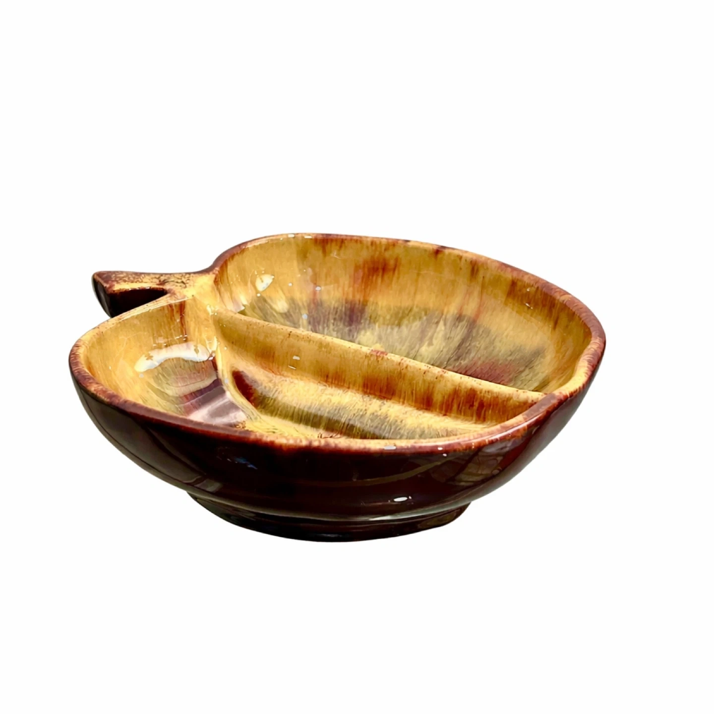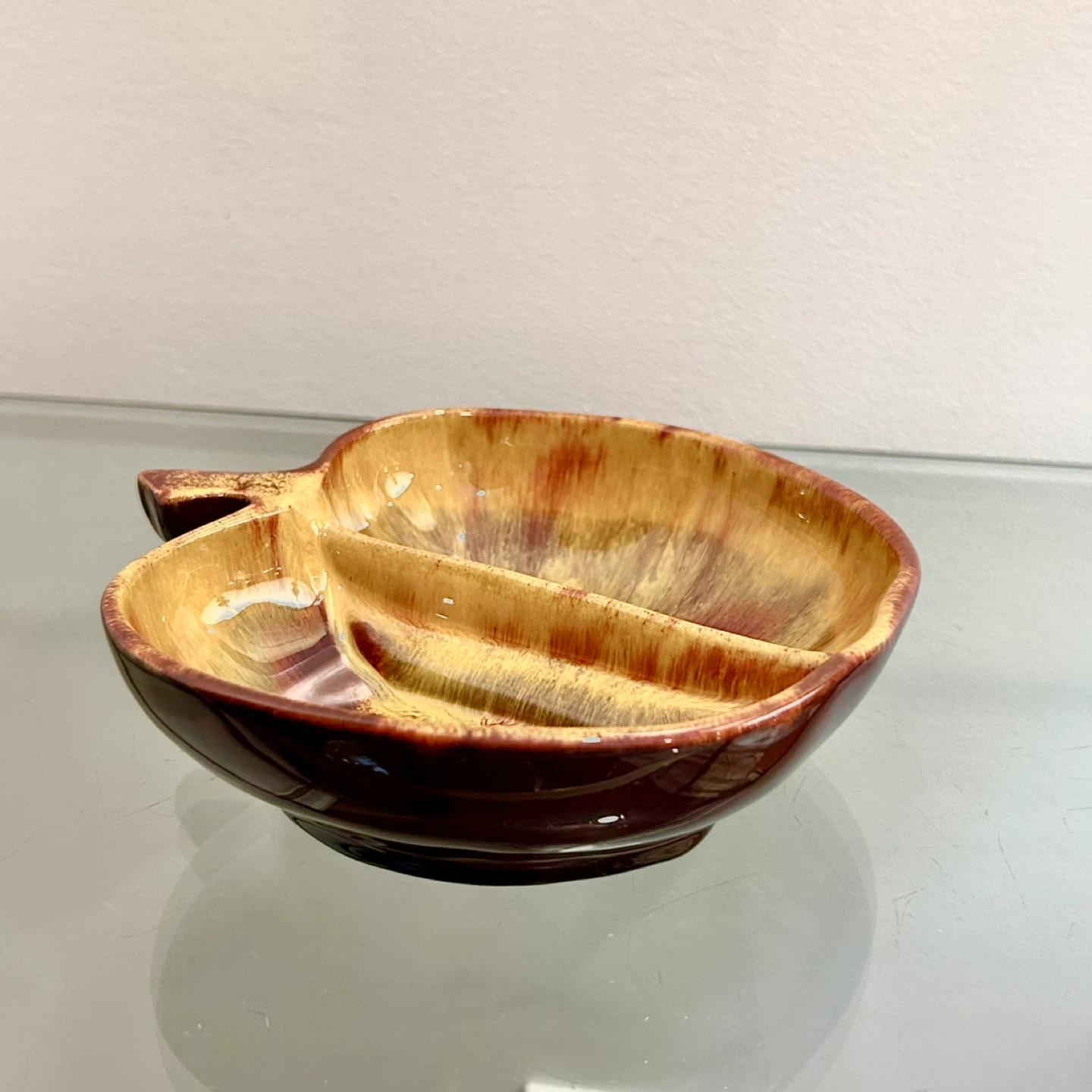 Mid-Century Apple Divided Dish, Drip Glaze Studio Pottery