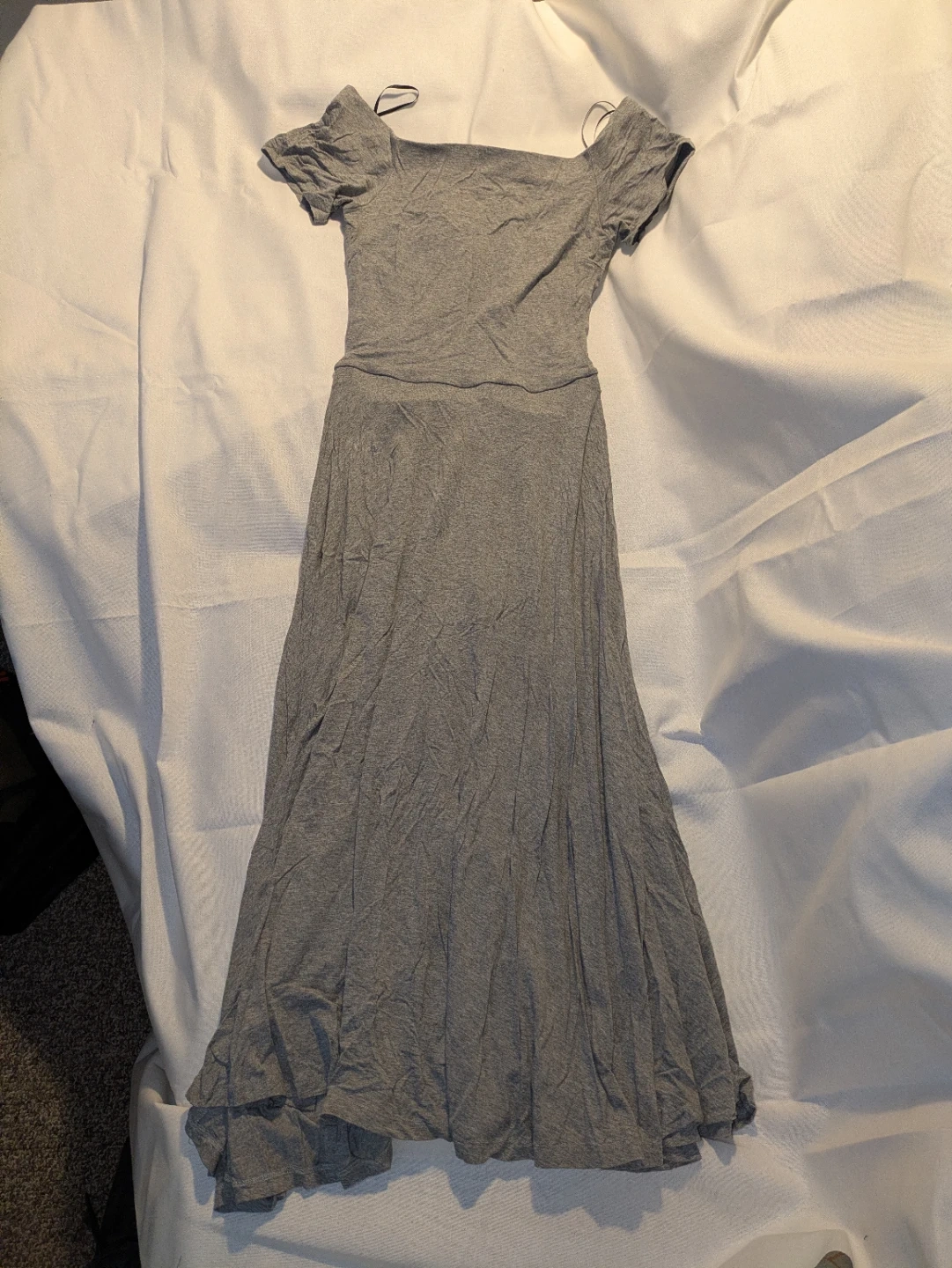 1. Grey maxi with cross back - H&M, Viscose/elastane (size M I'm pretty sure but I cut the tag out)