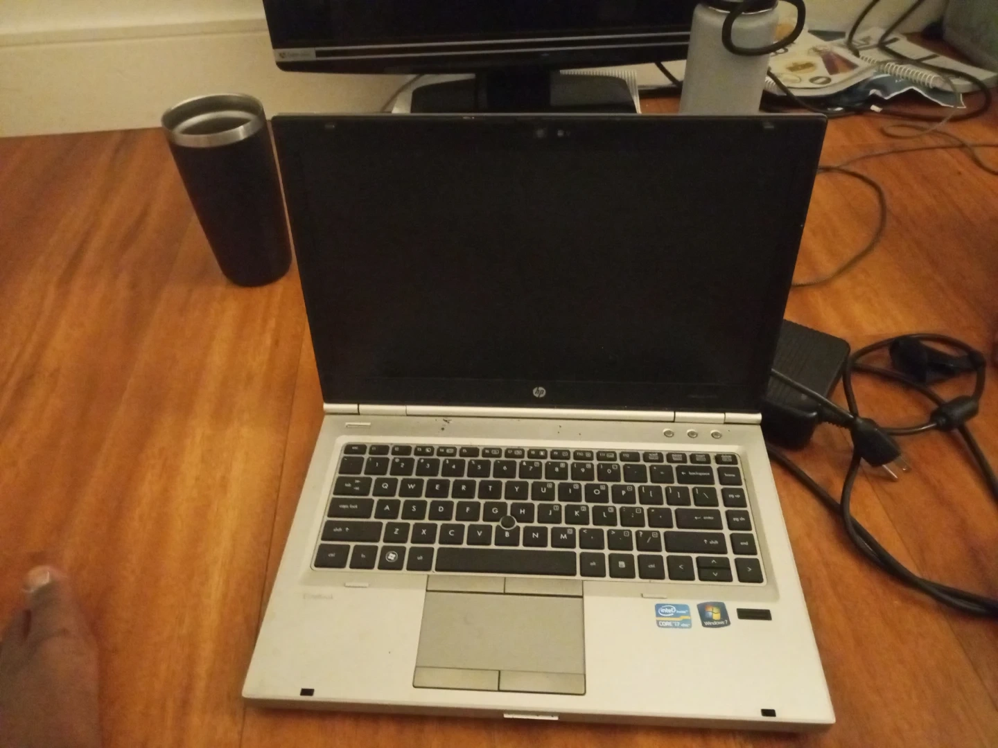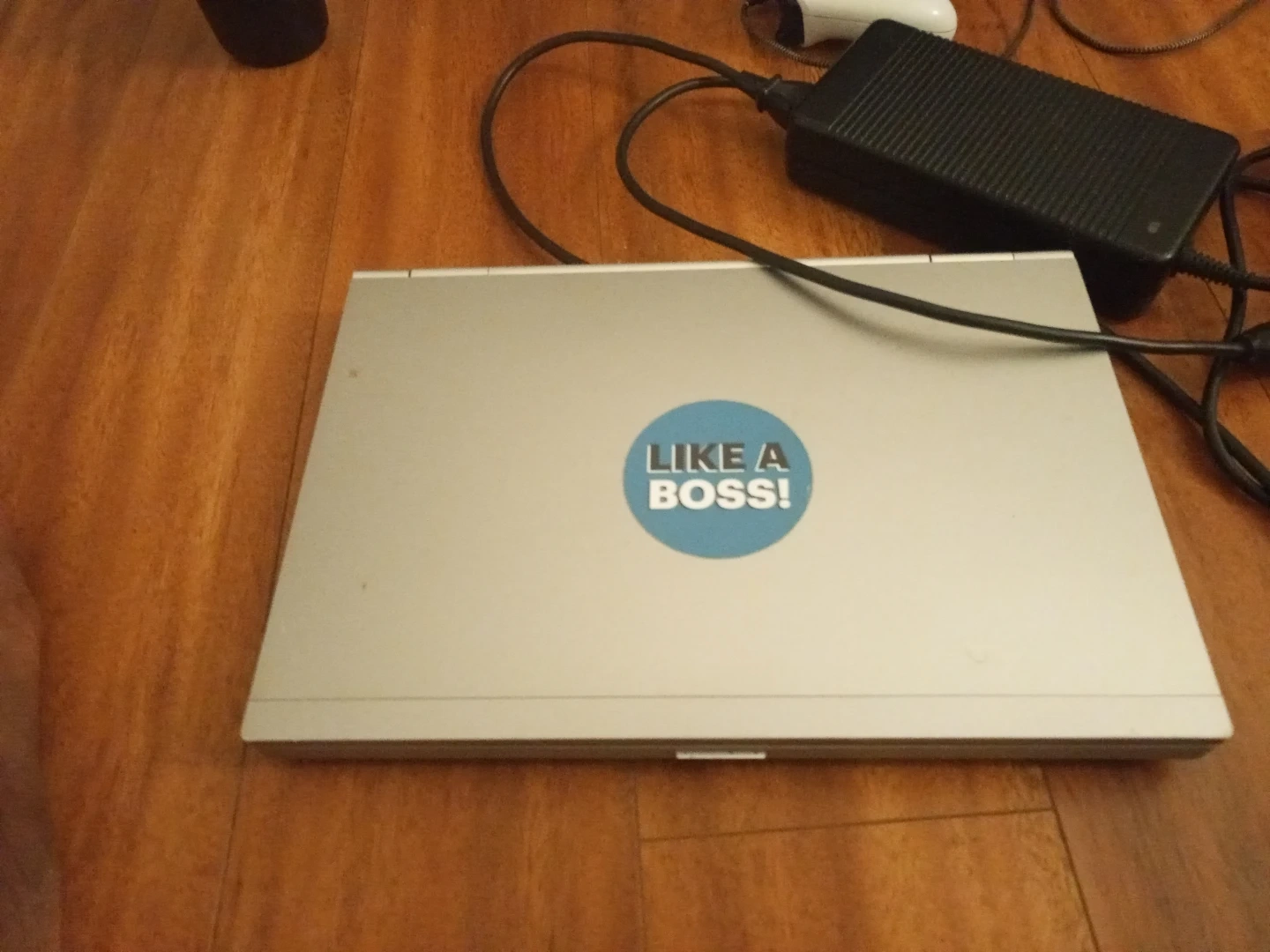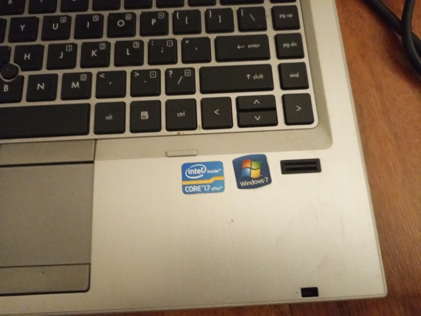 Selling an HP laptop with an Intel Core i7 processor and Windows 7. It comes with a charger. The laptop has a sticker on the back that says "LIKE A BOSS!" 🥕