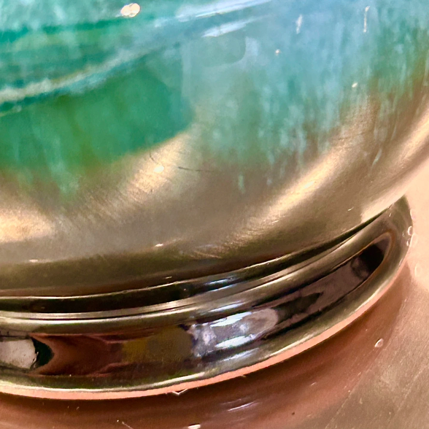 Vintage Canadian art pottery vase by Blue Mountain Pottery, clearly marked “BMP CANADA” on the base (please see base photo). Finished in BMP’s signature high-gloss flowing/drip glaze—a vibrant teal/turquoise with darker blue-black pooling and strong depth.
