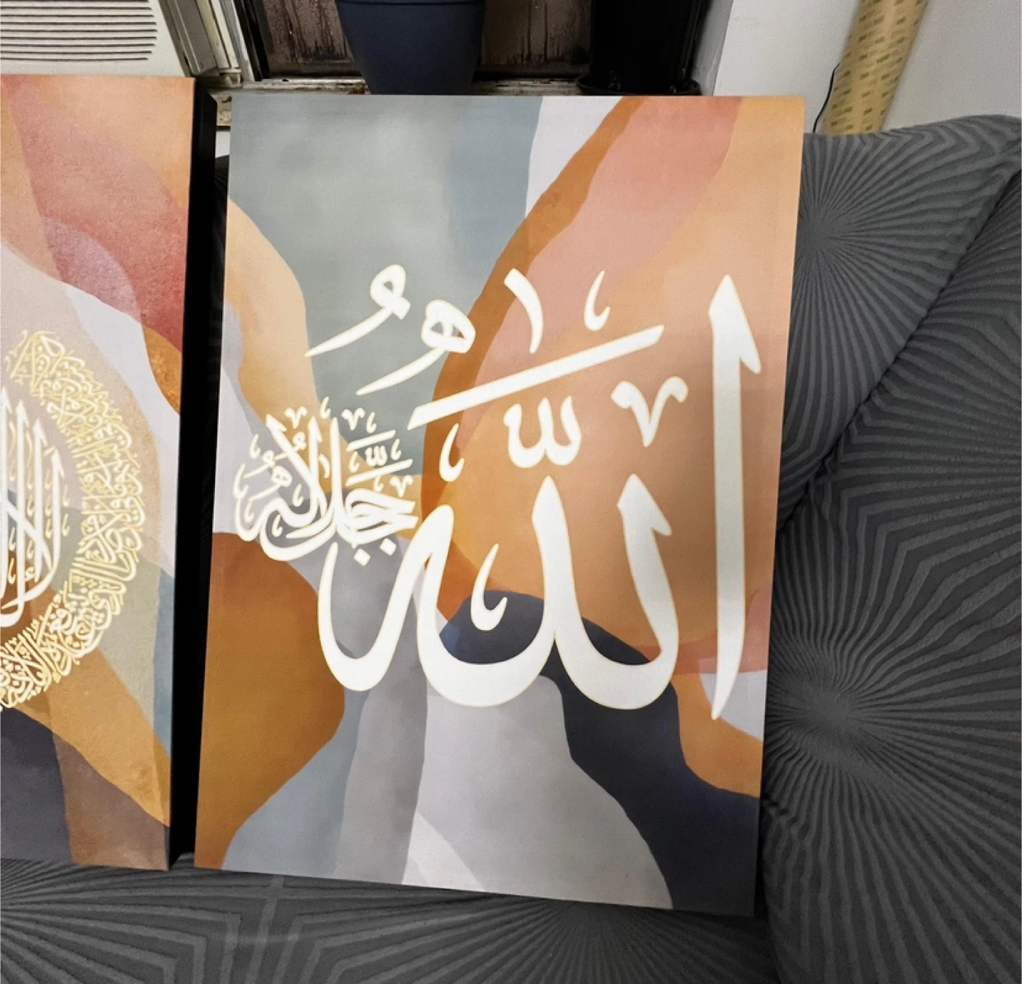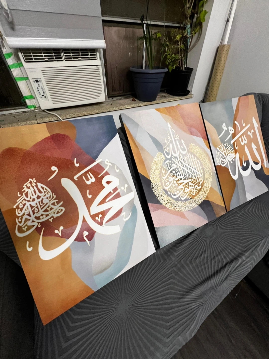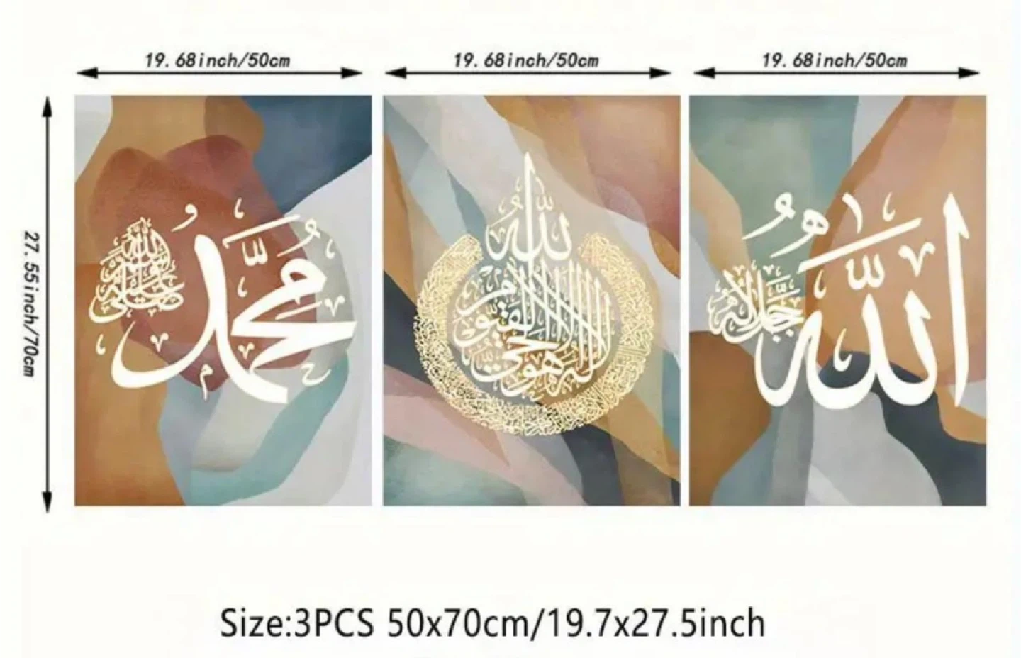 Set of three beautiful Islamic calligraphy art pieces! They feature unique designs and would make a lovely addition to any home decor.