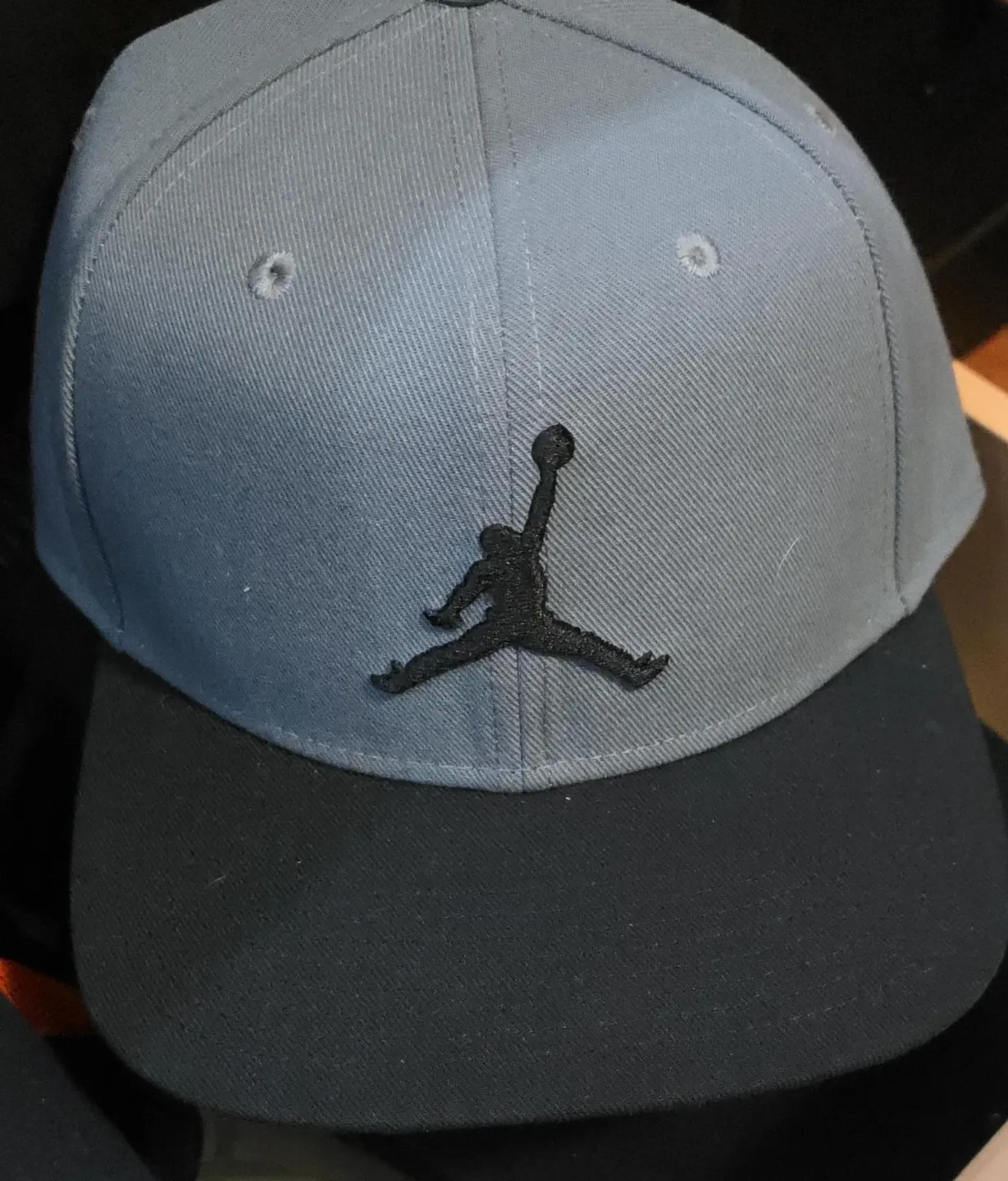 Selling a Jordan hat featuring the iconic Jumpman logo! It's a stylish gray-and-black combination, like new. I've never used it; it's just part of my hat collection. Selling it to make space.