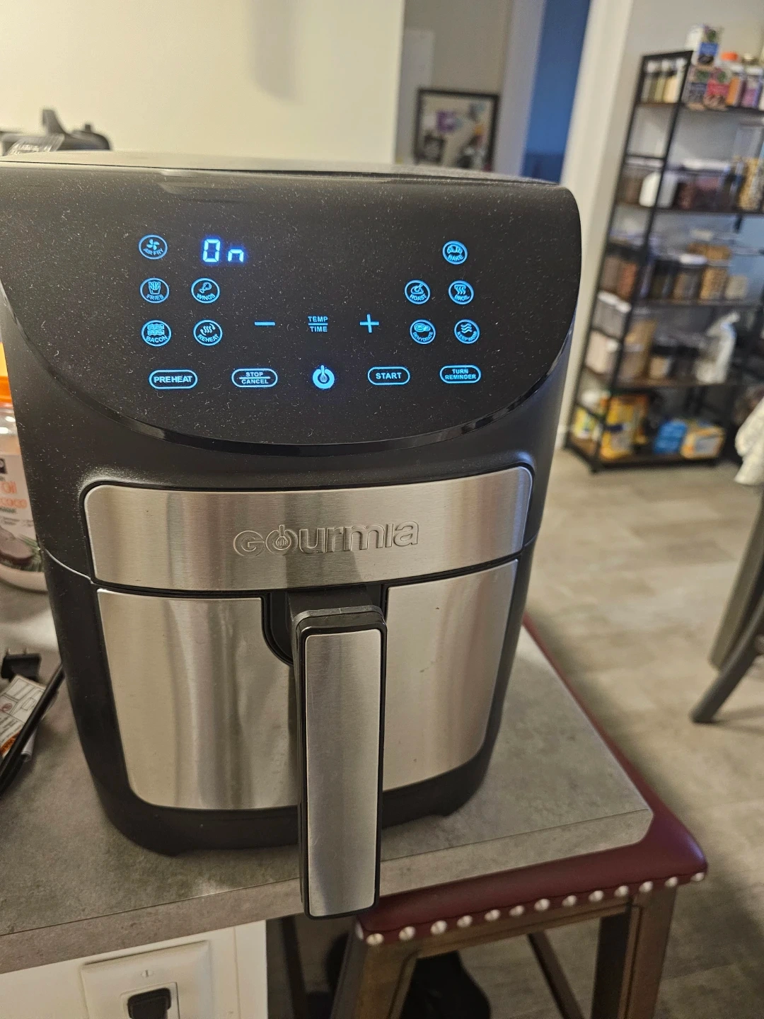 Selling a Gourmia air fryer! It's in great condition and ready for your kitchen. It features preheat, stop/cancel, temperature time control, and start/turn reminder functions, making cooking a breeze. Used lightly , under 2 years old.