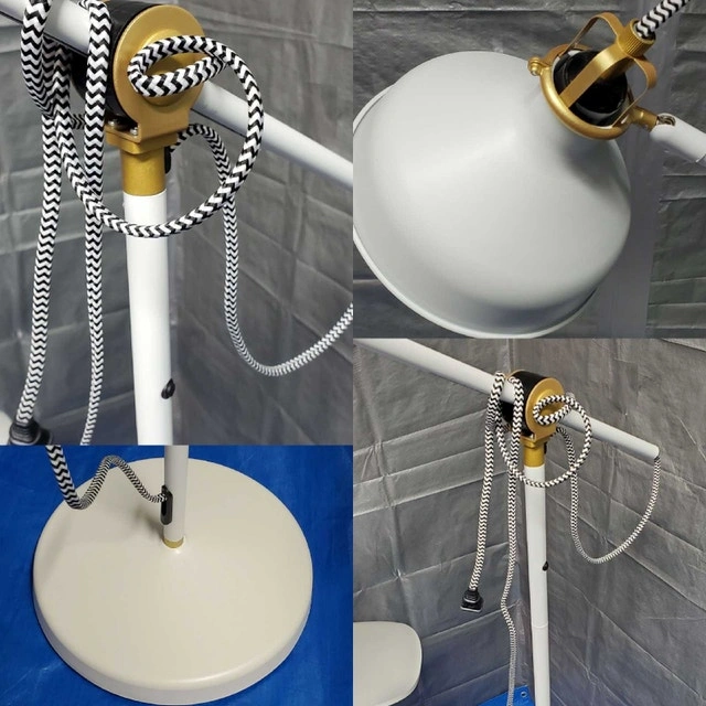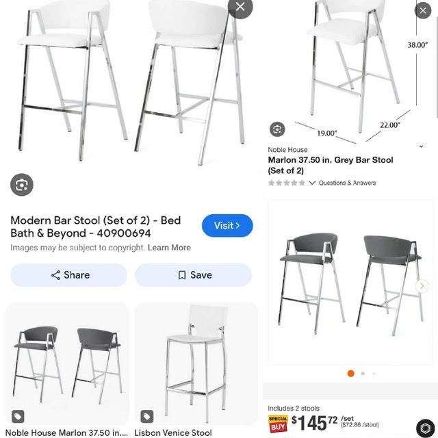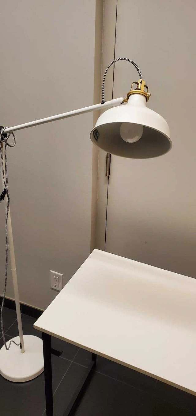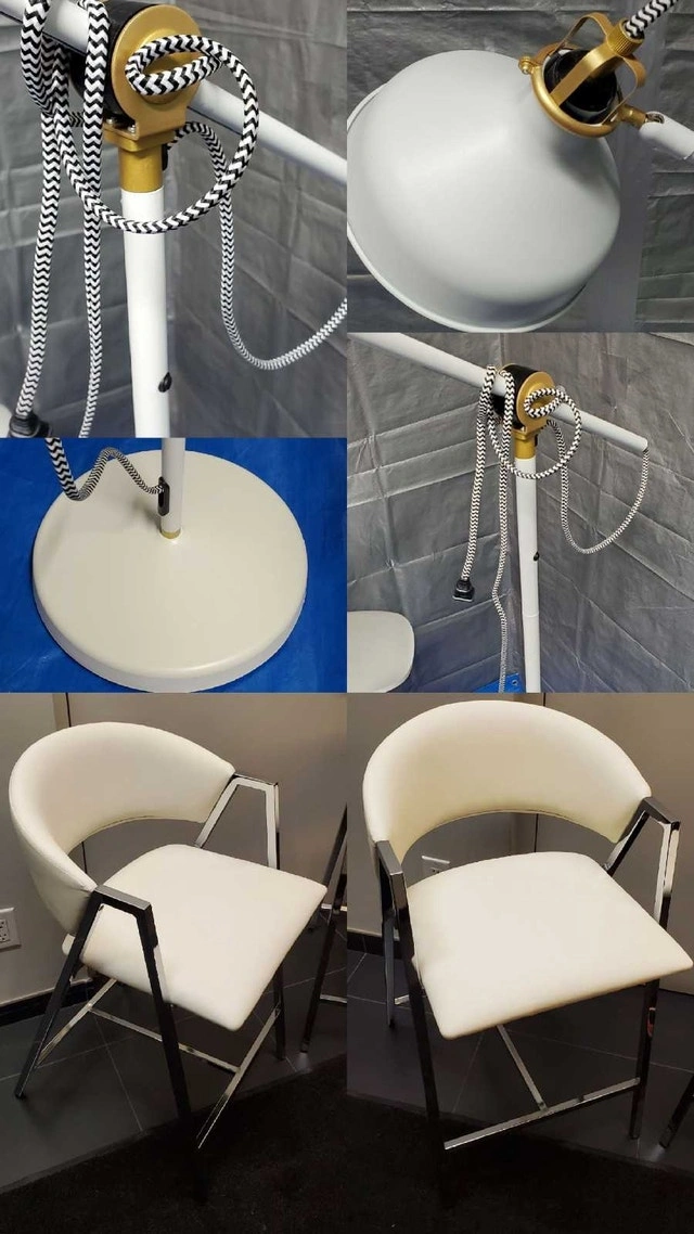 Selling an Ikea SKURUP floor lamp paired with two NobleHouse Marlon bar stools, perfect for adding a modern touch to any space. The floor lamp features an adjustable arm for focused lighting, and the bar stools offer a sleek design with comfortable seating. These items are used, but in excellent condition. Here are some details about the items: