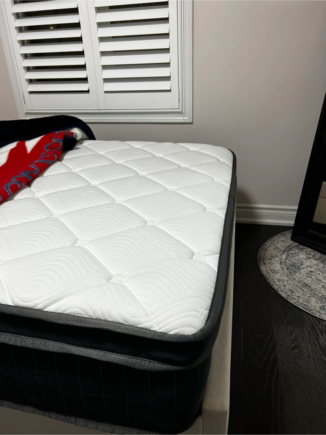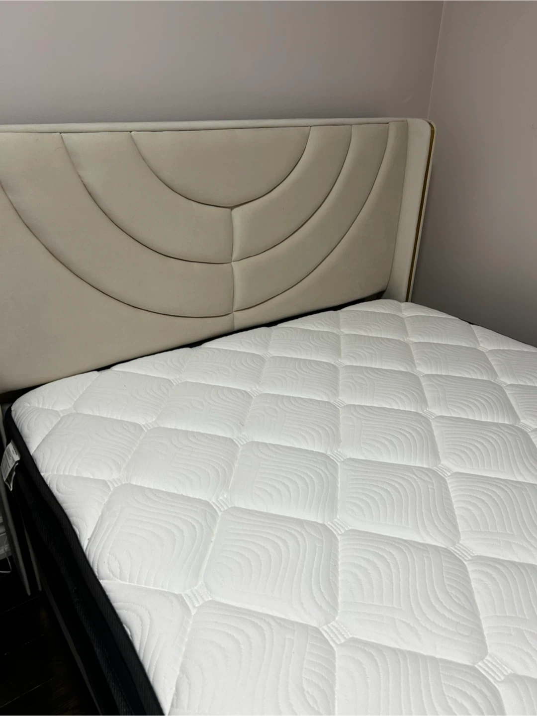 Selling a mattress with a stylish headboard. It's in great shape and ready to provide a comfortable night's sleep. The headboard adds a touch of elegance to any bedroom!