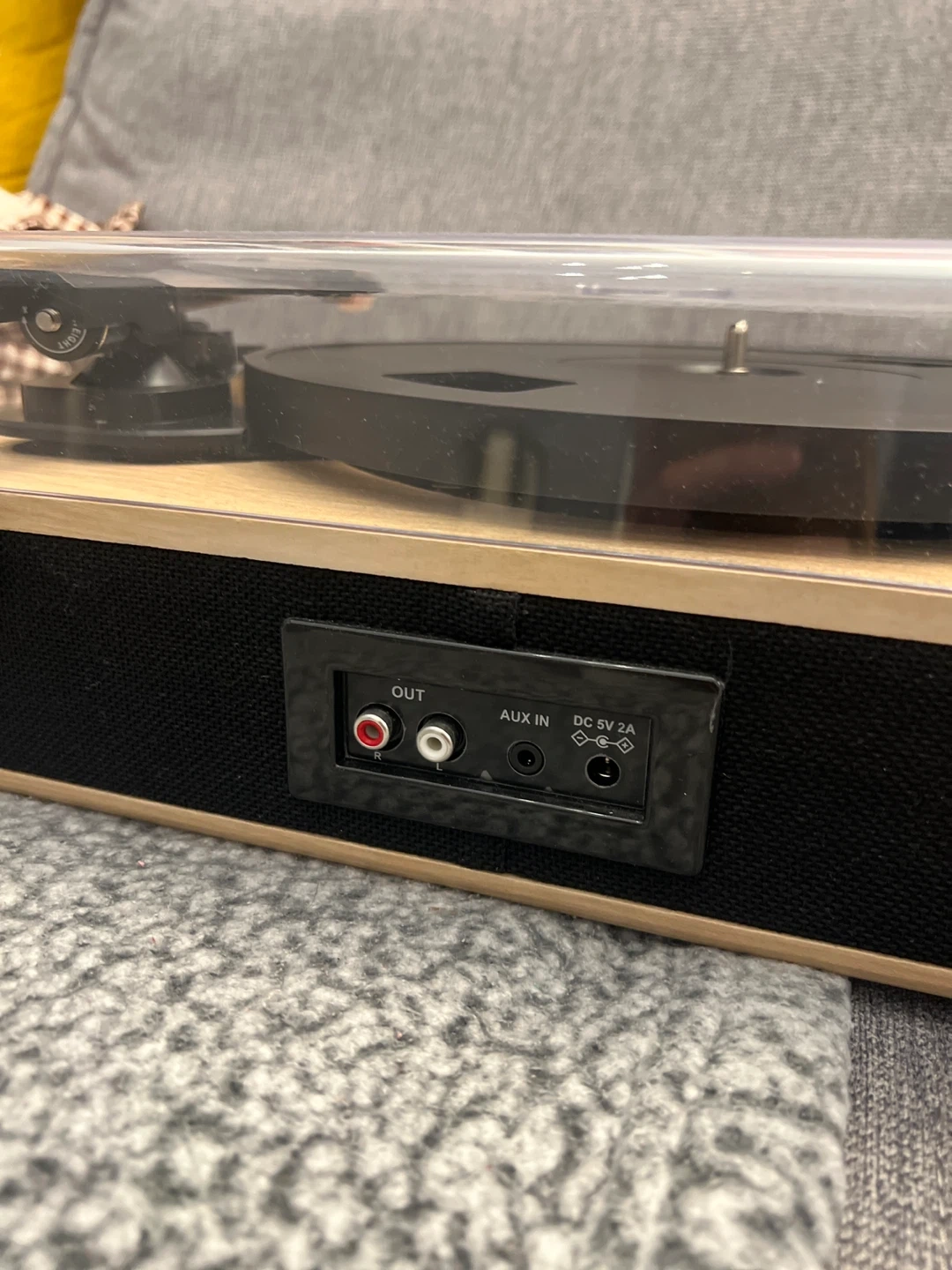 In light wood/birch color. Not only can play vinyl records, you can also play all your favorite digital music at any time via Wireless bluetooth connection. Playing music from mobile phones, MP3, tablets and other wireless-enabled audio devices.