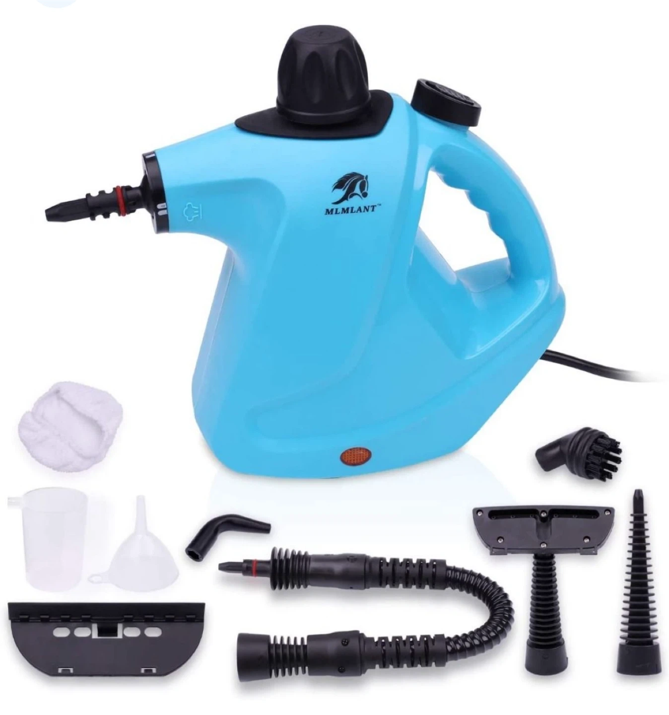 Selling a MLMLANT handheld steam cleaner in a nice blue colour. It comes with all the attachments you see in the picture. It's great for cleaning around the house! Only used once